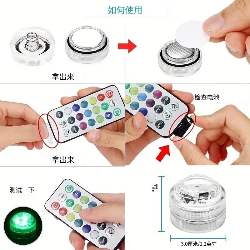수중 조명 LED 다이아몬드 다채로운 조명 원격 제어 다이빙 조명 풀 조명 분수 조명 물고기 탱크 조명 꽃병 조명 촛불 조명스토어 가기
