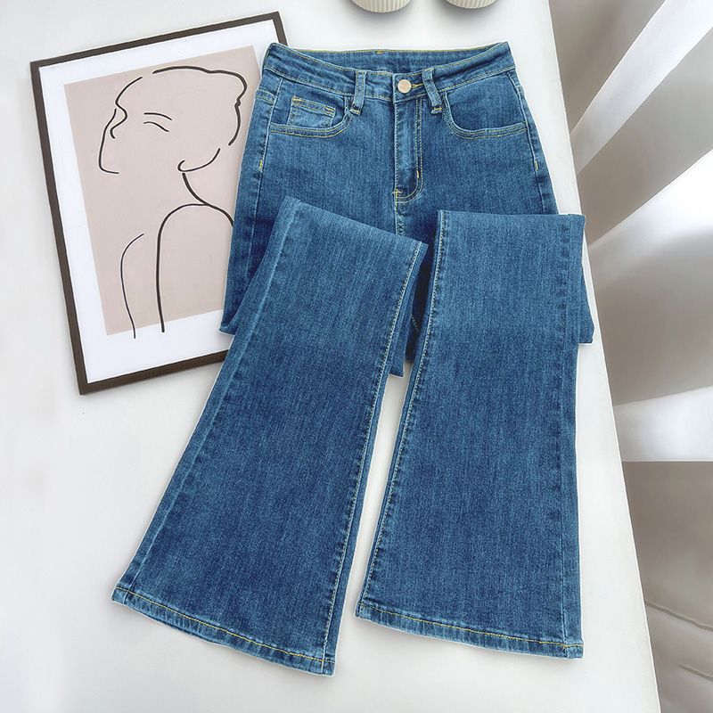 마이크로 플레어 진 올 매치 여성 의류 새로운 도착 슬림 핏 높은 허리 스트레치 말굽 바지 2024 봄/여름
