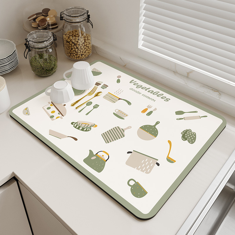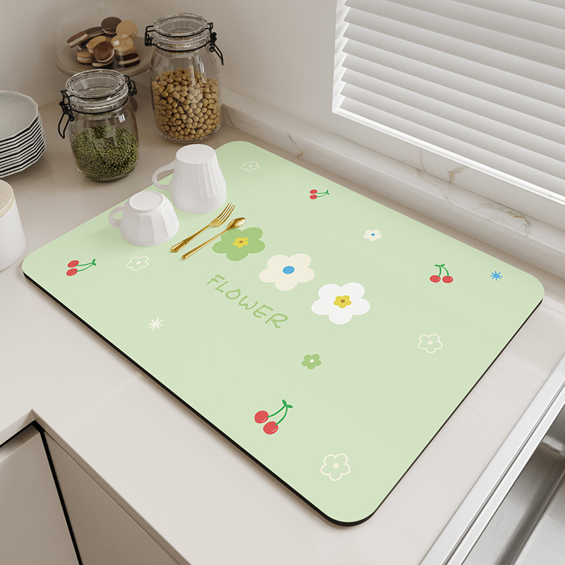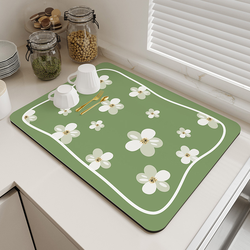 작은 신선한 원자 진흙 흡수 패드 바 카운터 테이블 탑 건조 패드 주방 그릇 건조 패드 곰팡이 방지 미끄럼 방지 코스터