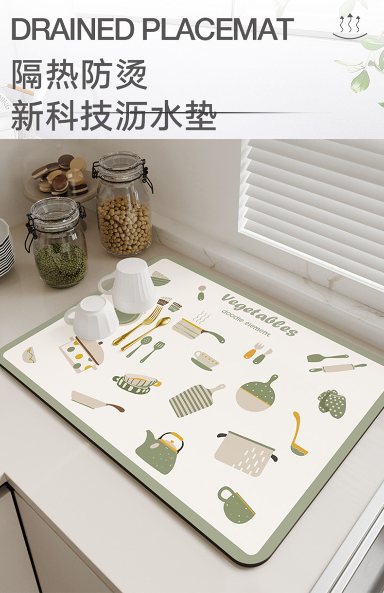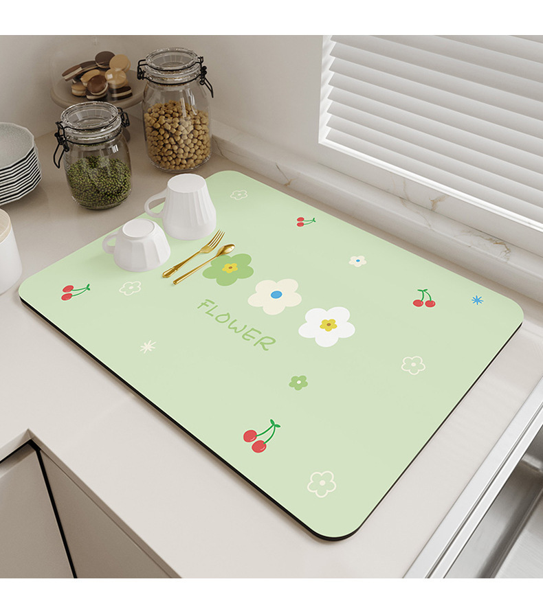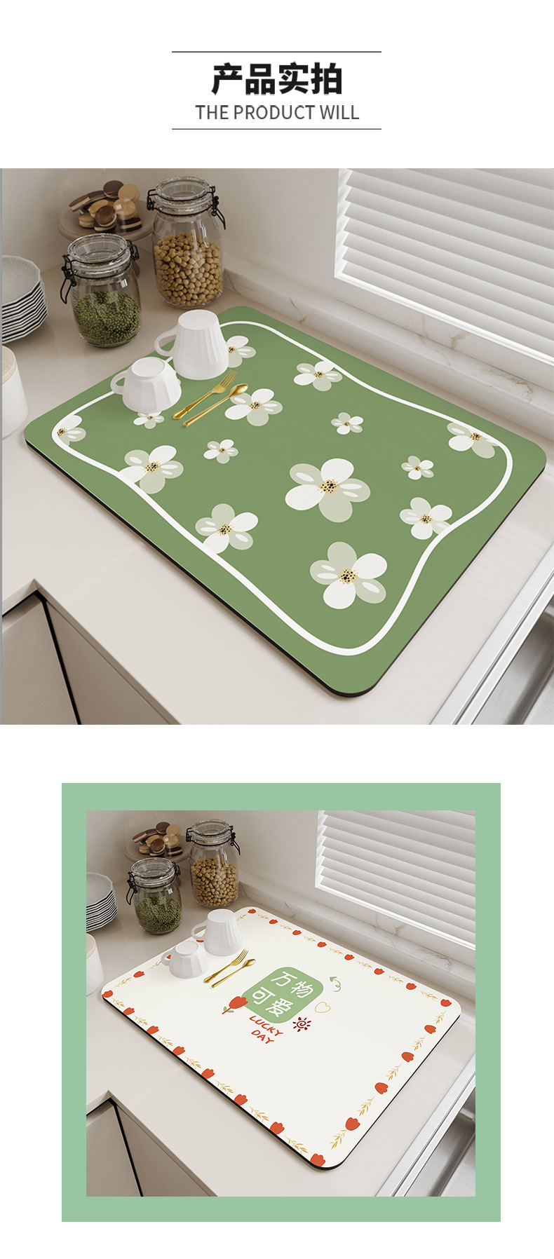 작은 신선한 원자 진흙 흡수 패드 바 카운터 테이블 탑 건조 패드 주방 그릇 건조 패드 곰팡이 방지 미끄럼 방지 코스터스토어 가기