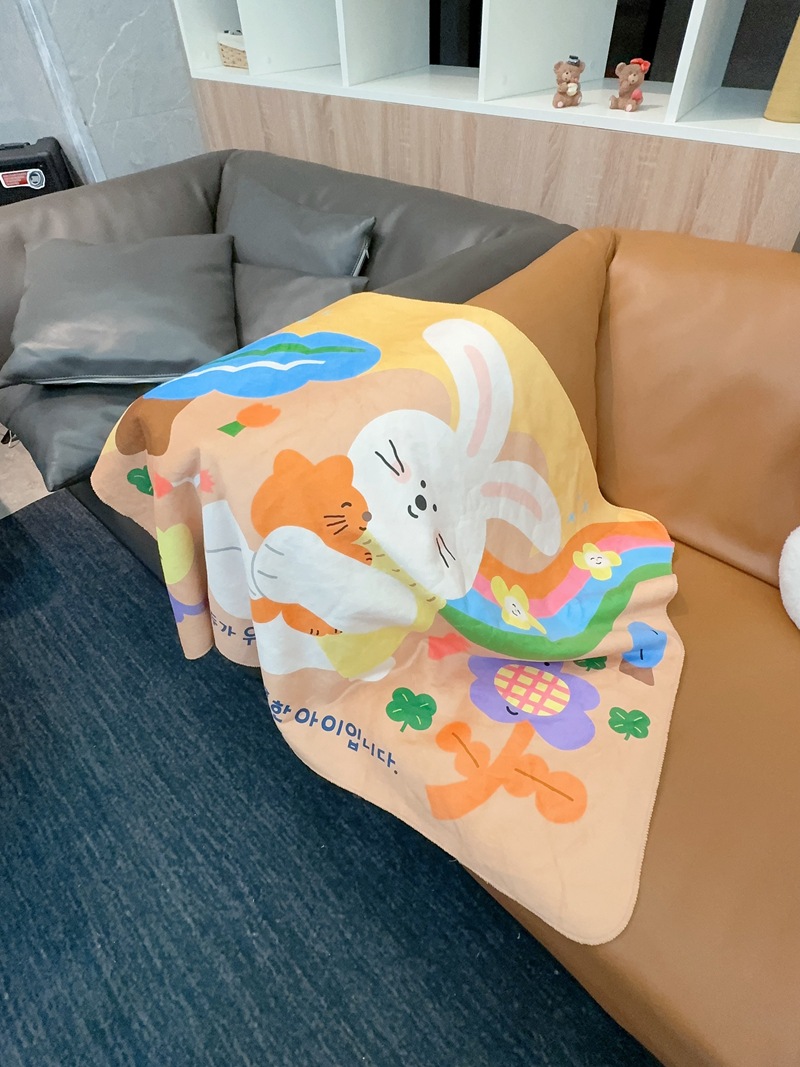 도매 만화 귀여운 어린이용 싱글/더블 레이어 복합 담요, 부드럽고 편안한 사무실용 다리덮개 에어컨 담요스토어 가기