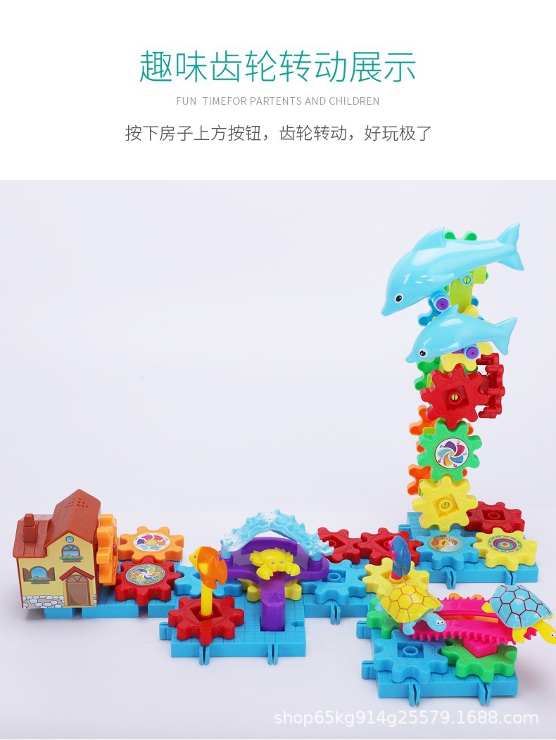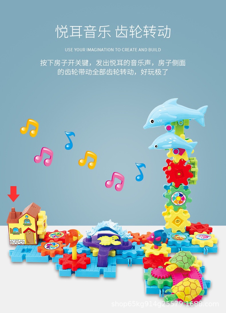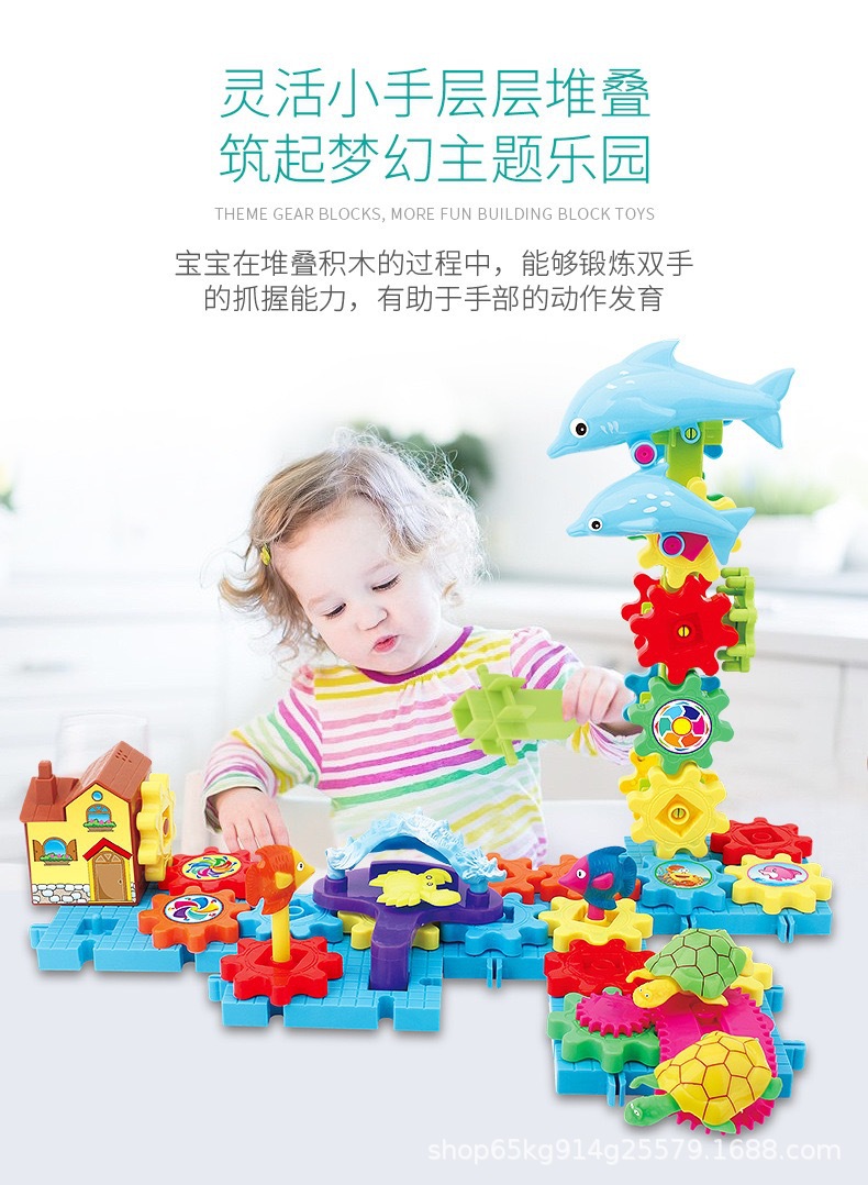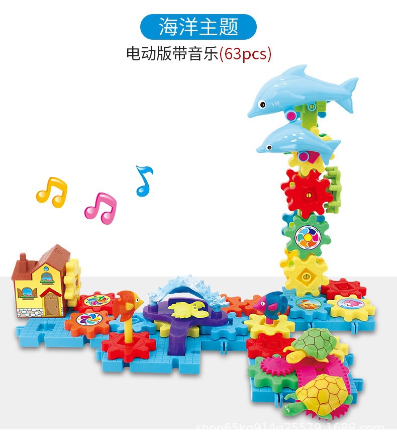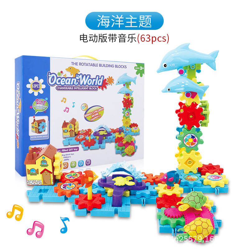 바다 다양한 퍼즐 빌딩 블록 재미 전기 조립 테마 기어 빌딩 블록 전기 음악 어린이 장난감 도매스토어 가기