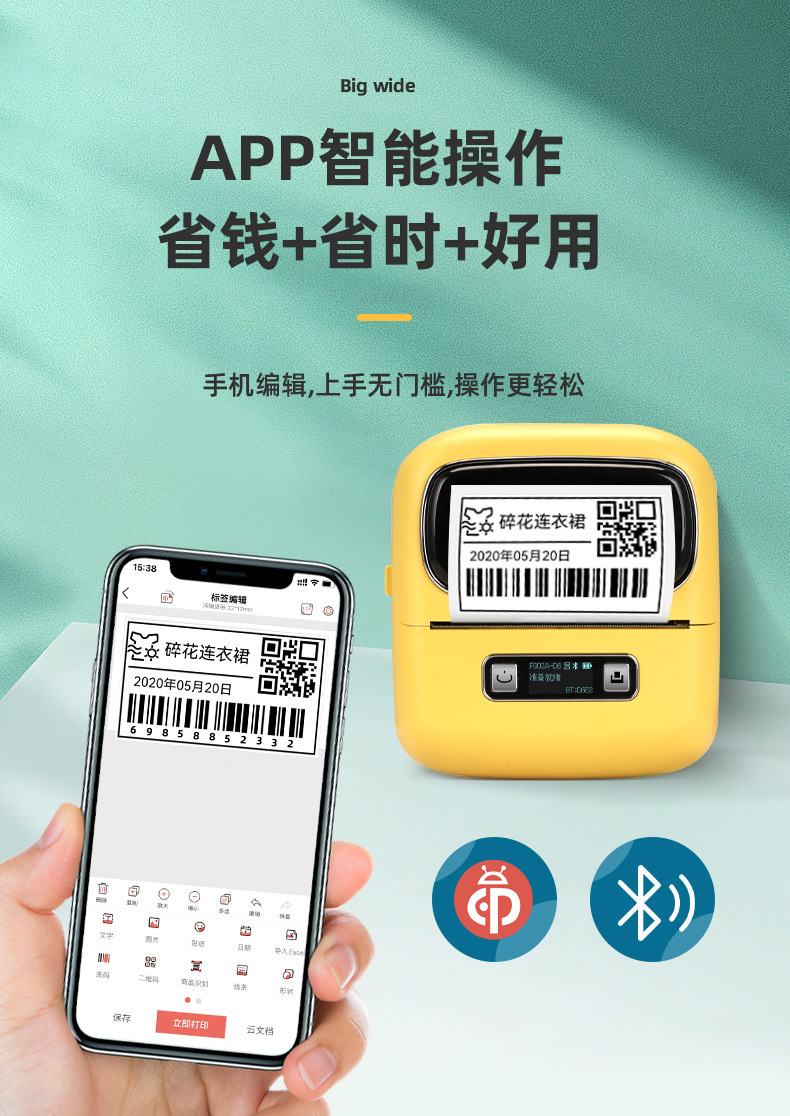 의류 태그 차 식품 라벨 프린터 작은 블루투스 빵 상품 가격 접착 스티커 프린터