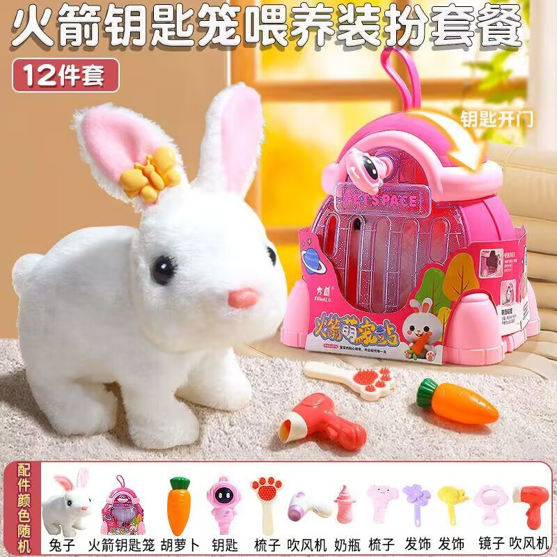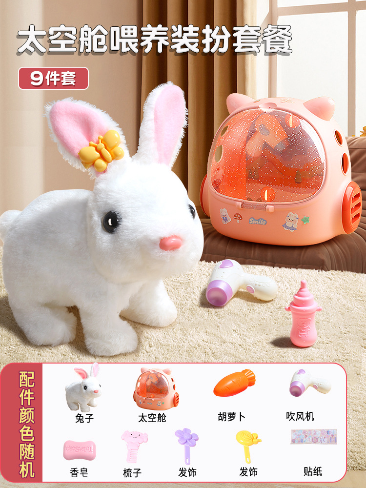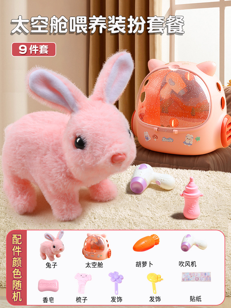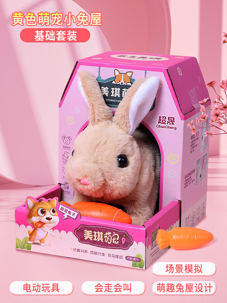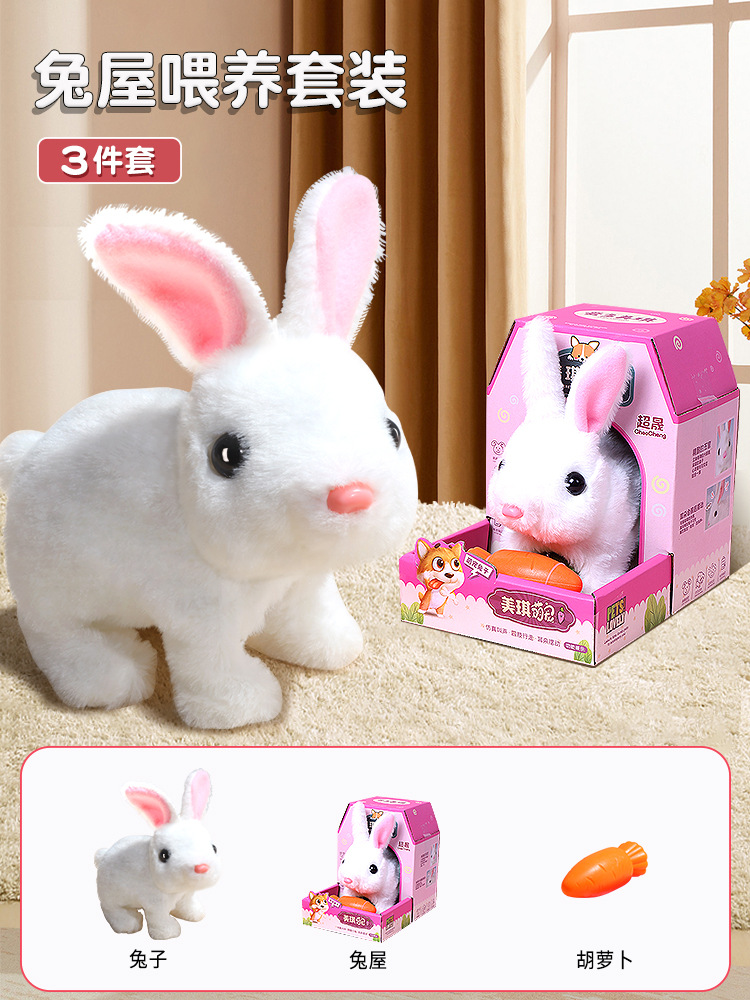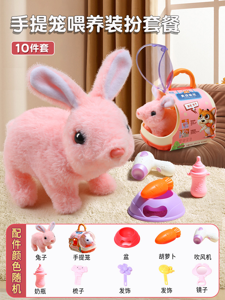 어린이 장난감 여자 강아지가 걸으면 아기 시뮬레이션 전기 봉제 토끼 케이지 생일 선물