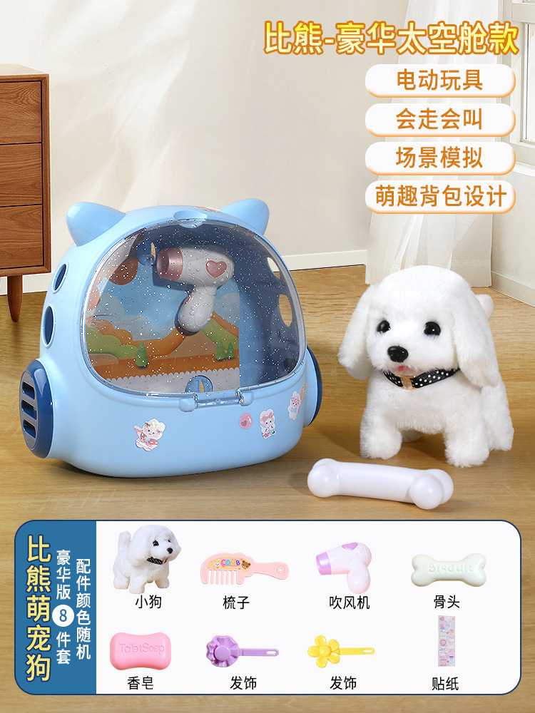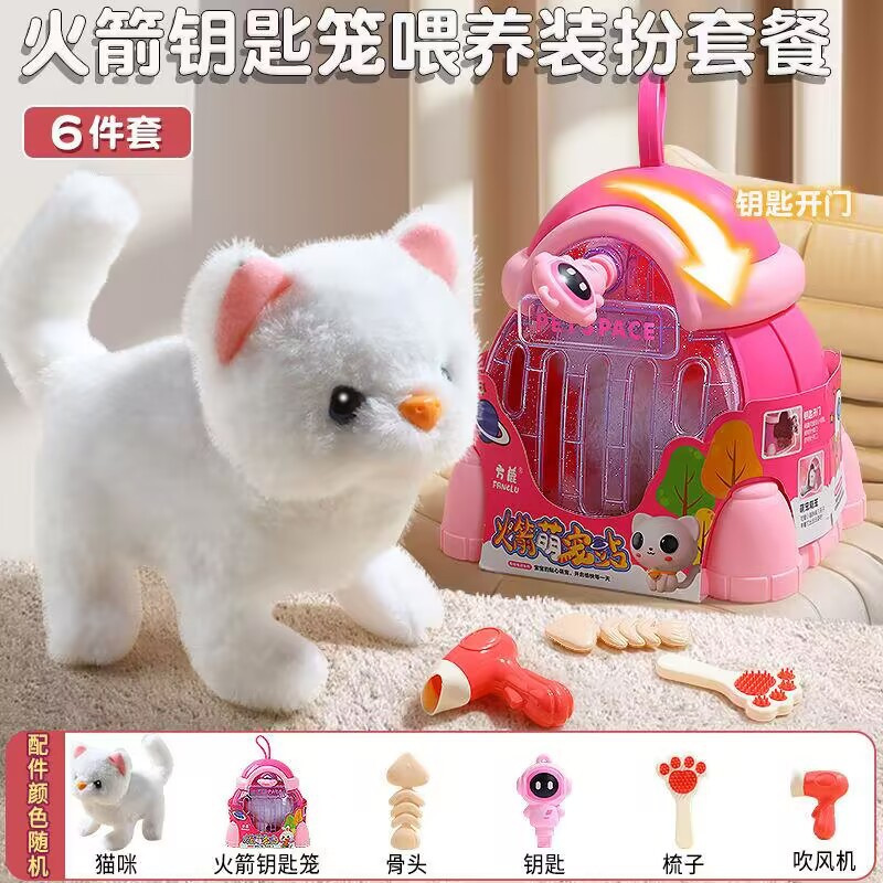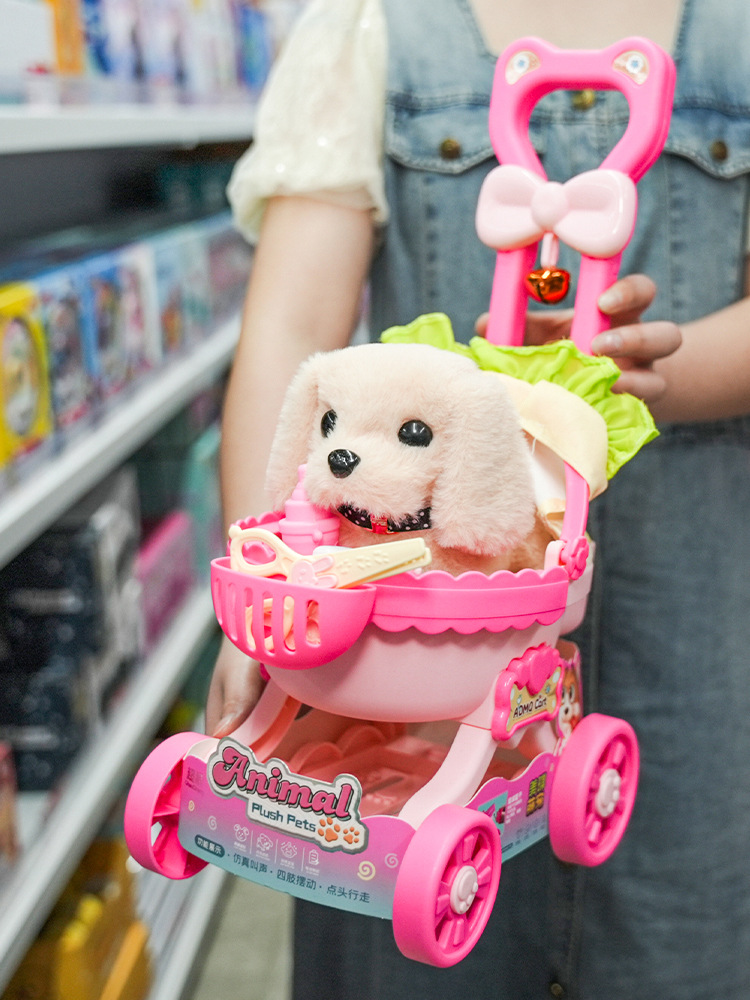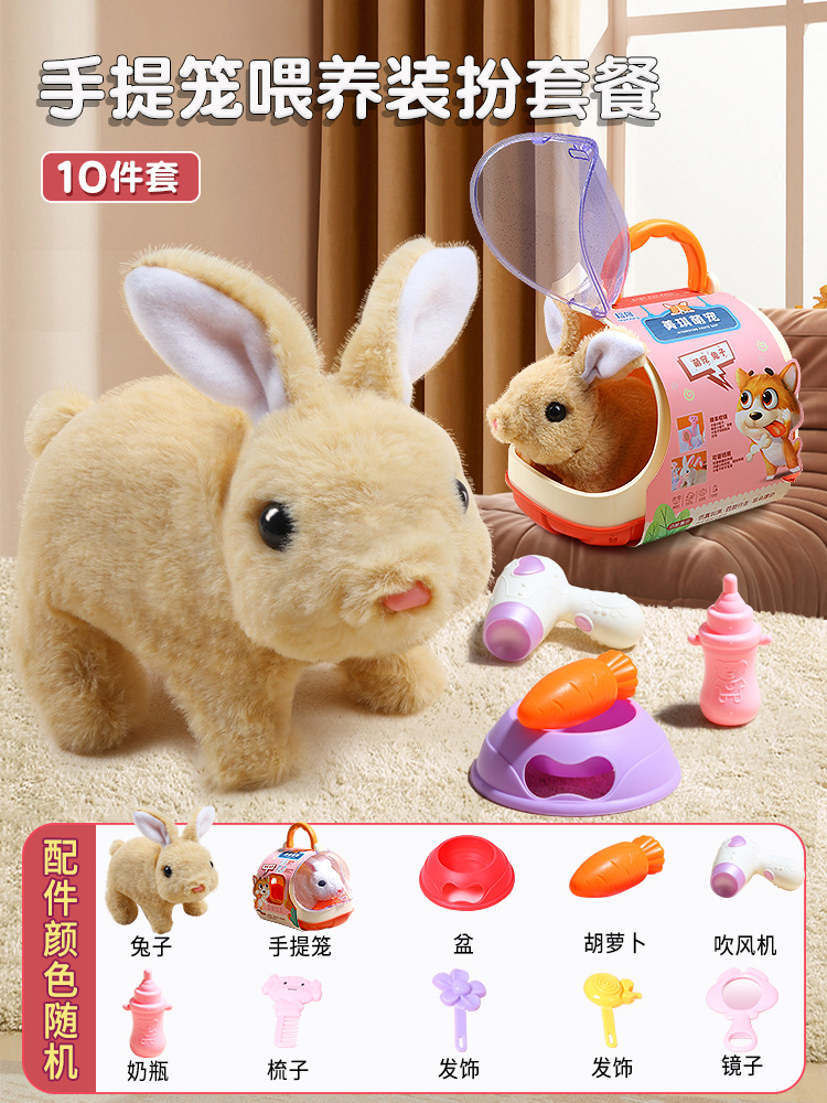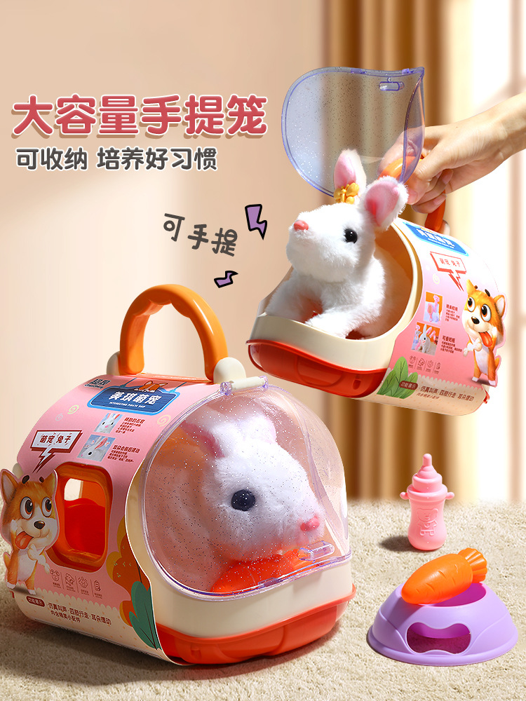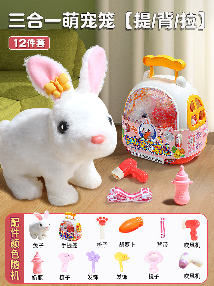 어린이 장난감 여자 강아지가 걸으면 아기 시뮬레이션 전기 봉제 토끼 케이지 생일 선물스토어 가기