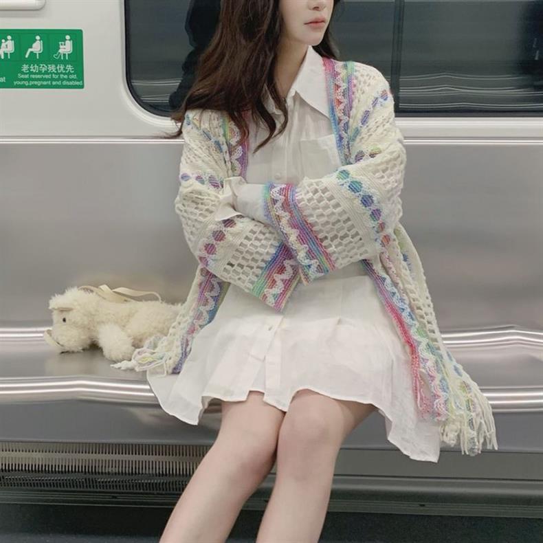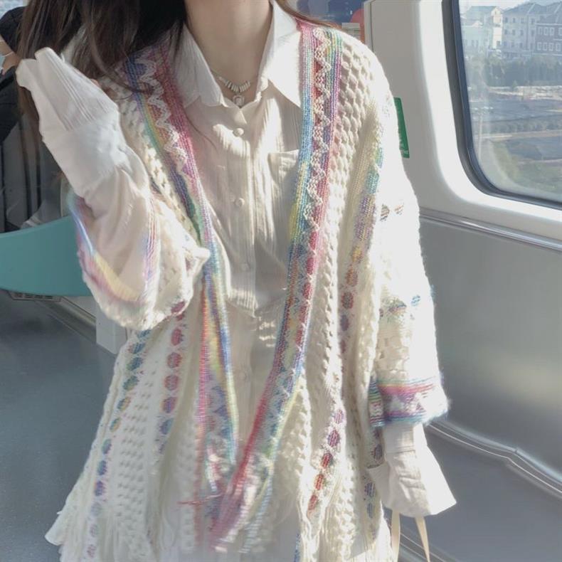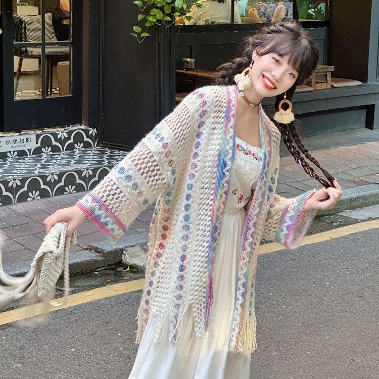 서부 쓰촨성 신장 티베트 칭하이 관광복 레트로 민족 스타일 목도리 느슨한 빈 니트 카디건 여성 코트