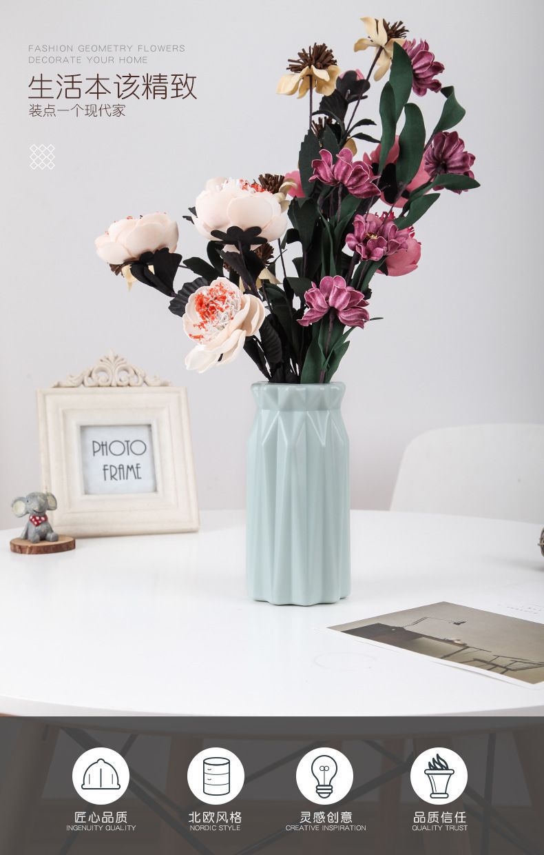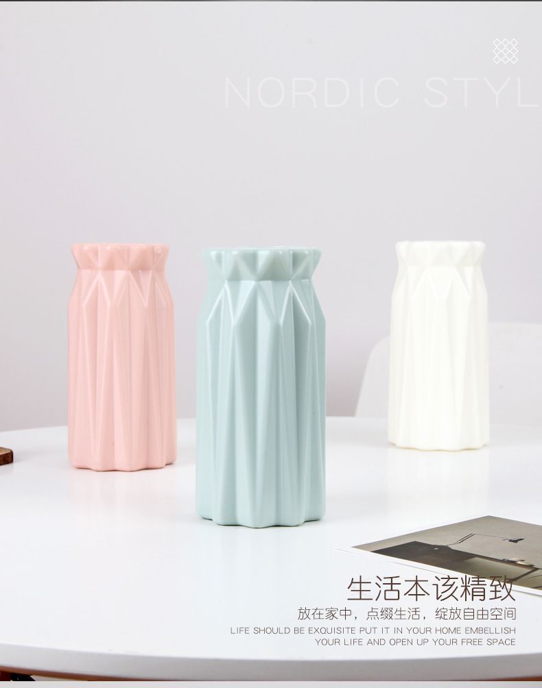 창조적 인 플라스틱 꽃병 간단한 현대 꽃 배열 다이아몬드 종이 접기 꽃병 건조하고 젖은 꽃 꽃병 거실 유약 장식