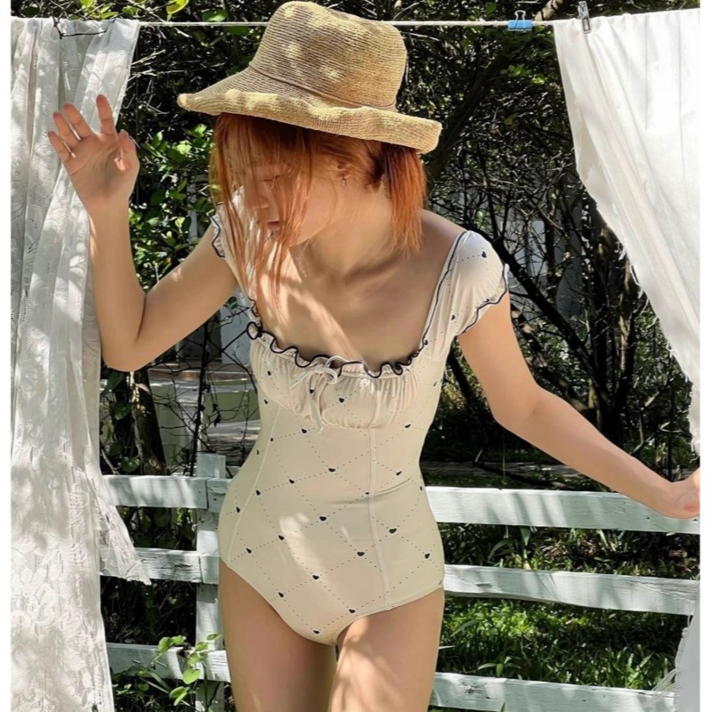 Auriculata Edge 예술적 신선한 스타일 2024 한국 온천 새로운 슬링 체크 무늬 섹시한 슬림 핏 수영복 여성스토어 가기