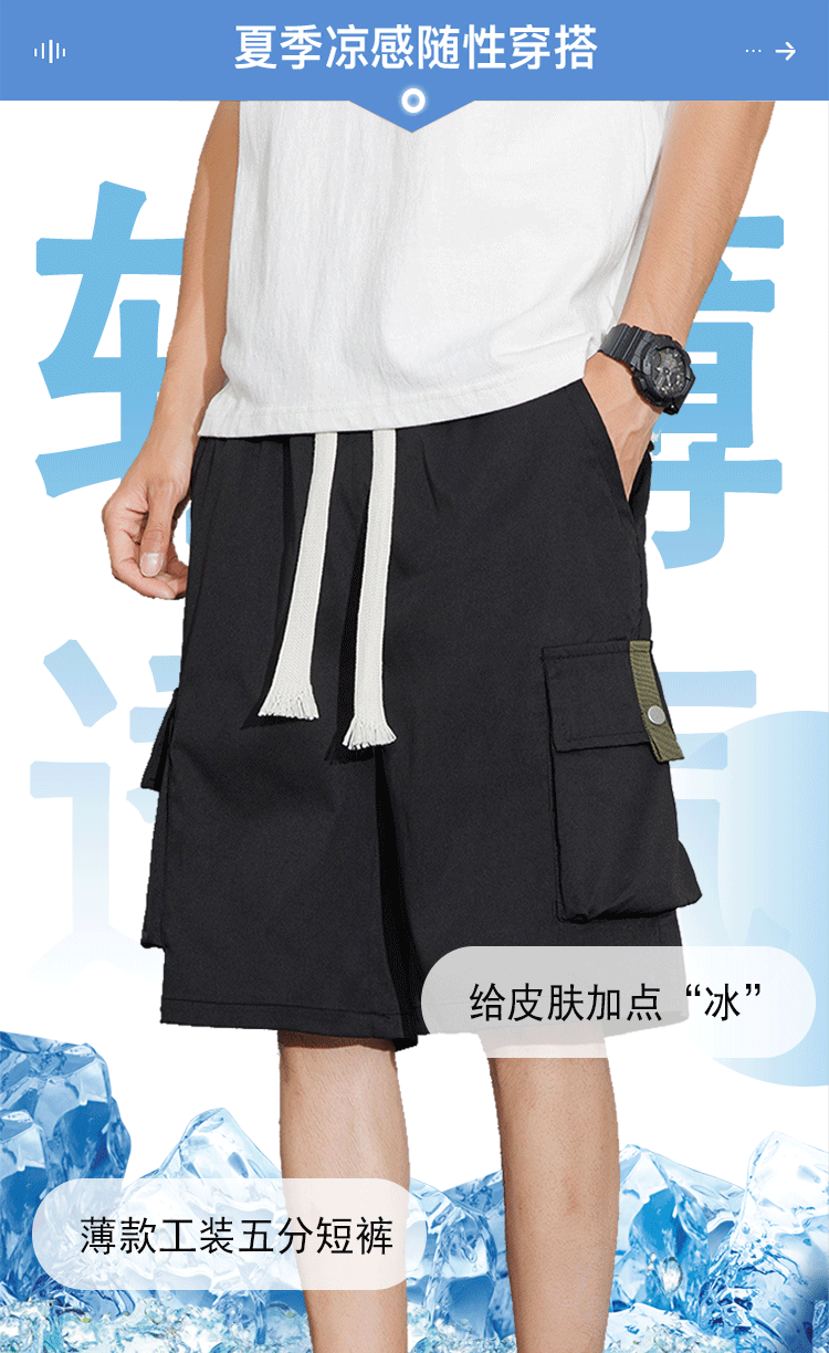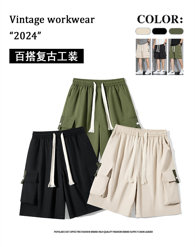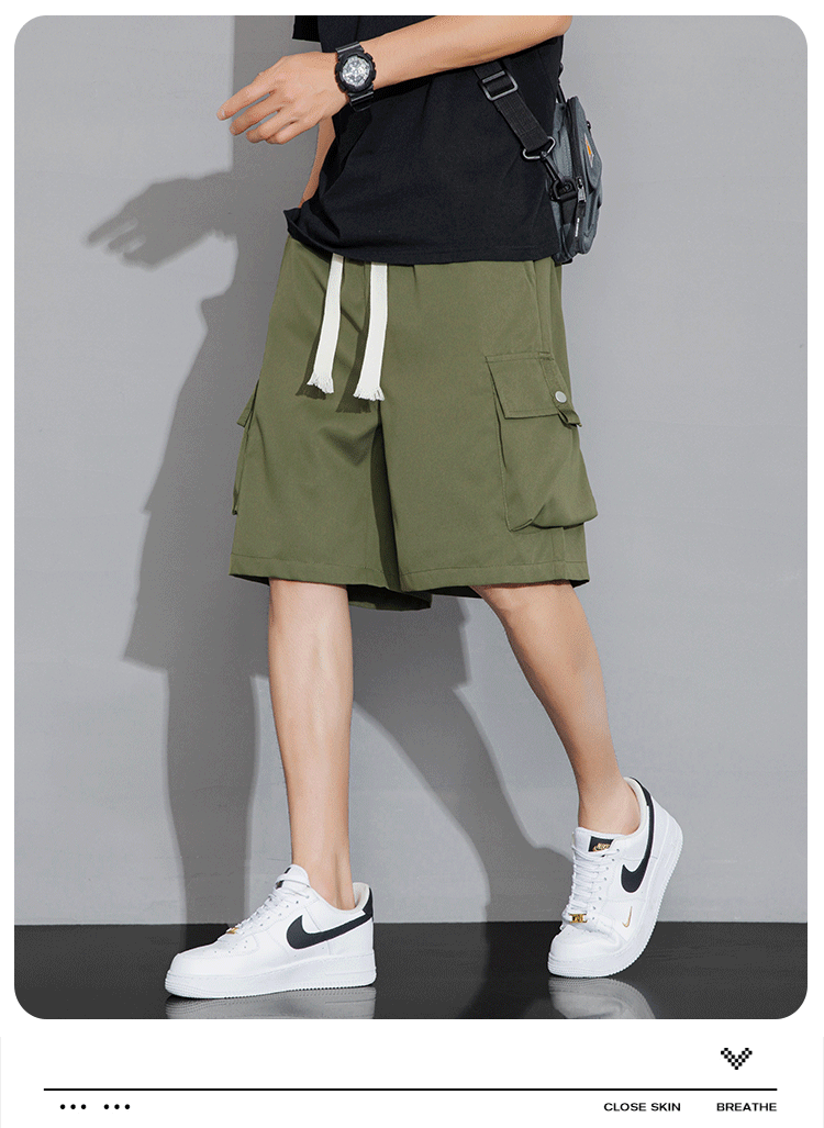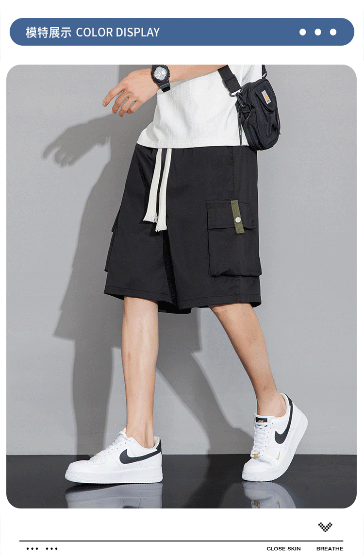 여름 새로운 도착 툴링 반바지 남성 트렌디 브랜드 홍콩 스타일 느슨한 아메리칸 스타일 스트리트 통기성 캐주얼 스포츠 얇은 바지