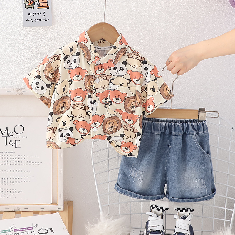 커스텀 보이즈 여름 반팔 셔츠 투피스 2024 새로운 아기 아동복 어린이 유행 셔츠스토어 가기