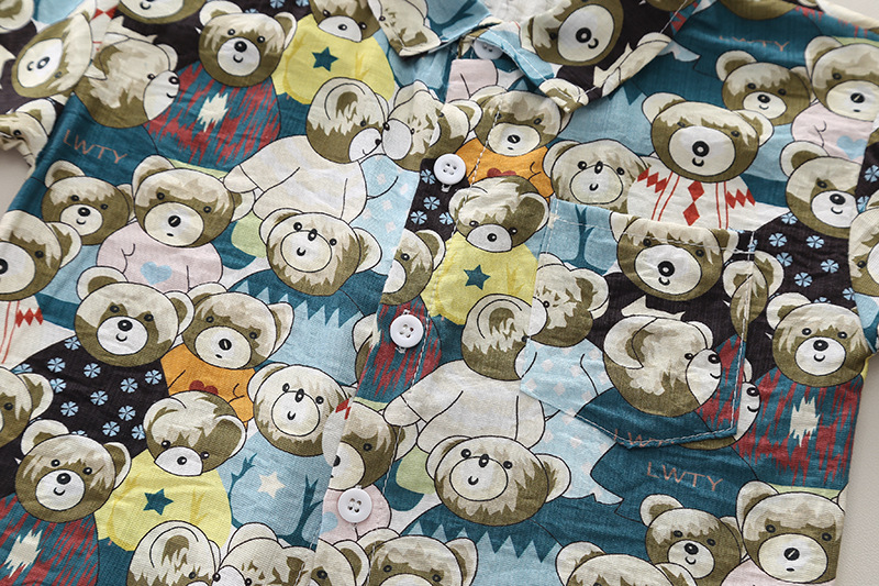 • 다크 브라운 베어 셔츠-짧은 소매-두 조각 GY