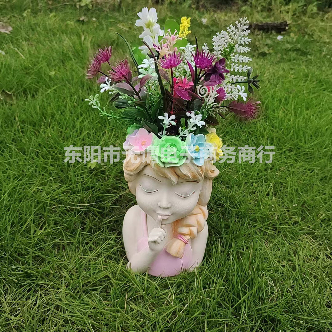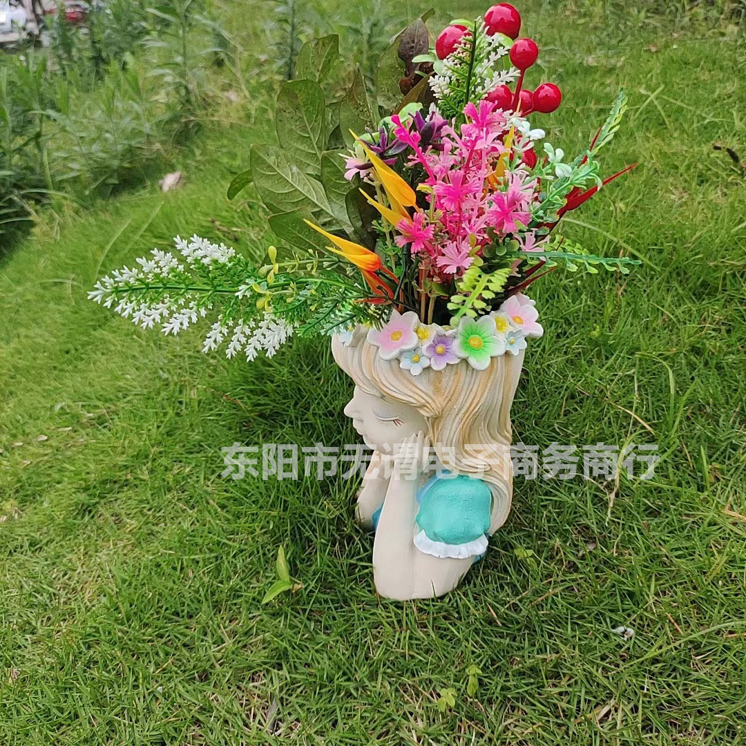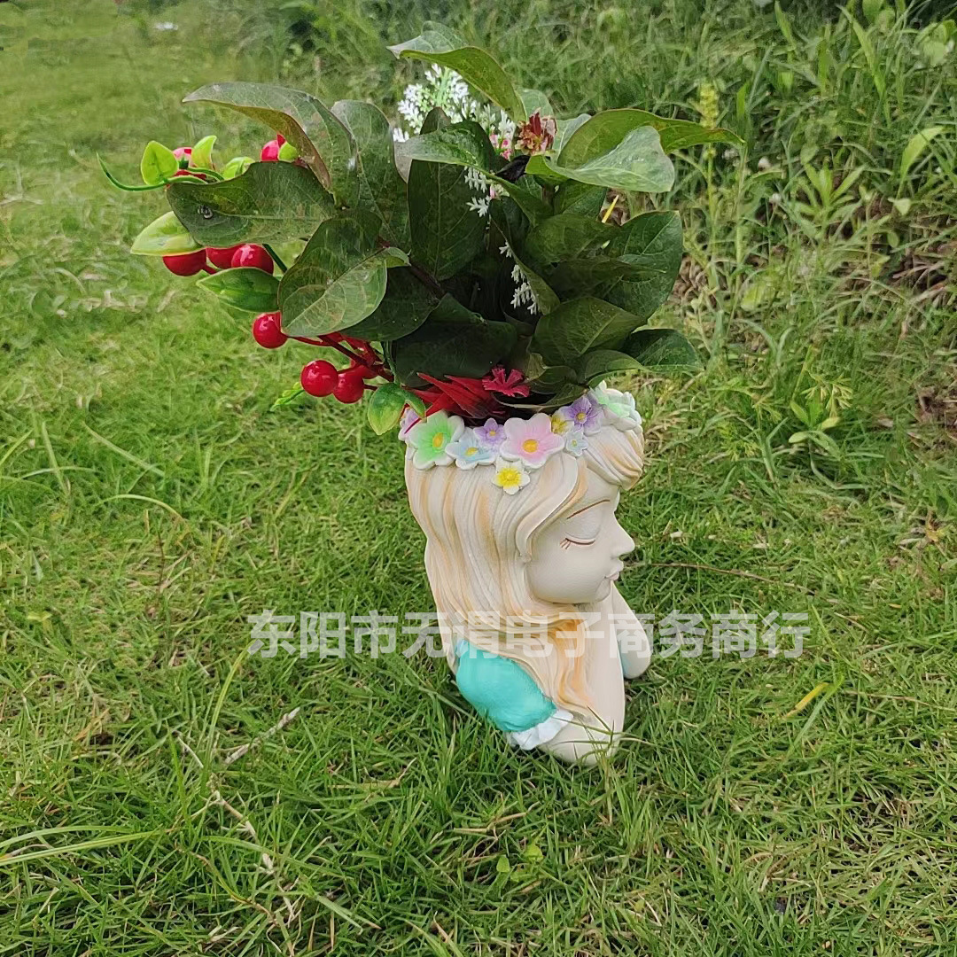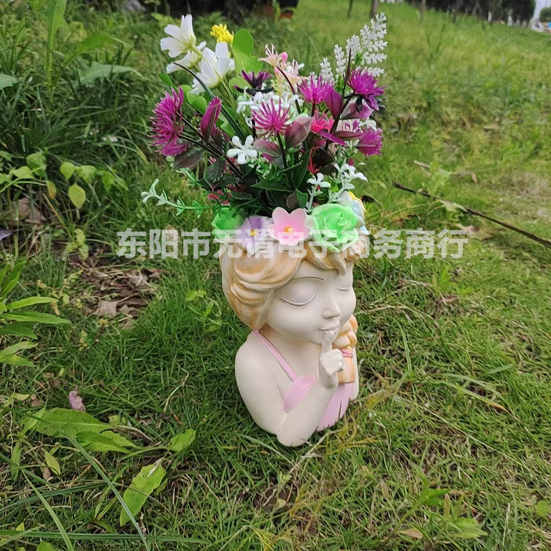 국경 간 신제품 정원 안뜰 다채로운 요정 반몸 항아리 머리 화환 소녀 꽃 냄비 야외 장식 장식품스토어 가기