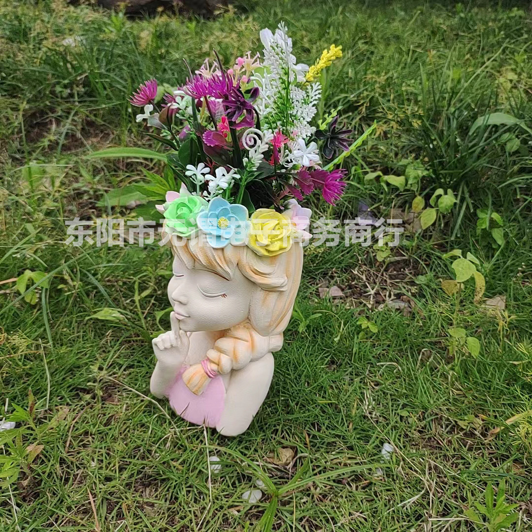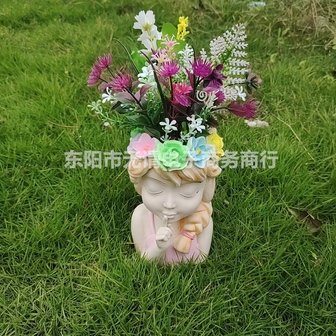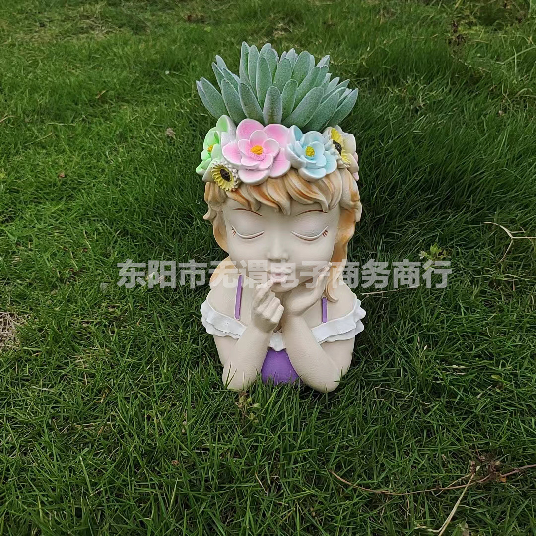 국경 간 신제품 정원 안뜰 다채로운 요정 반몸 항아리 머리 화환 소녀 꽃 냄비 야외 장식 장식품스토어 가기
