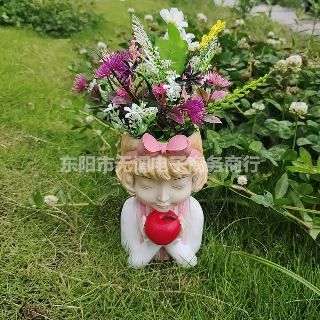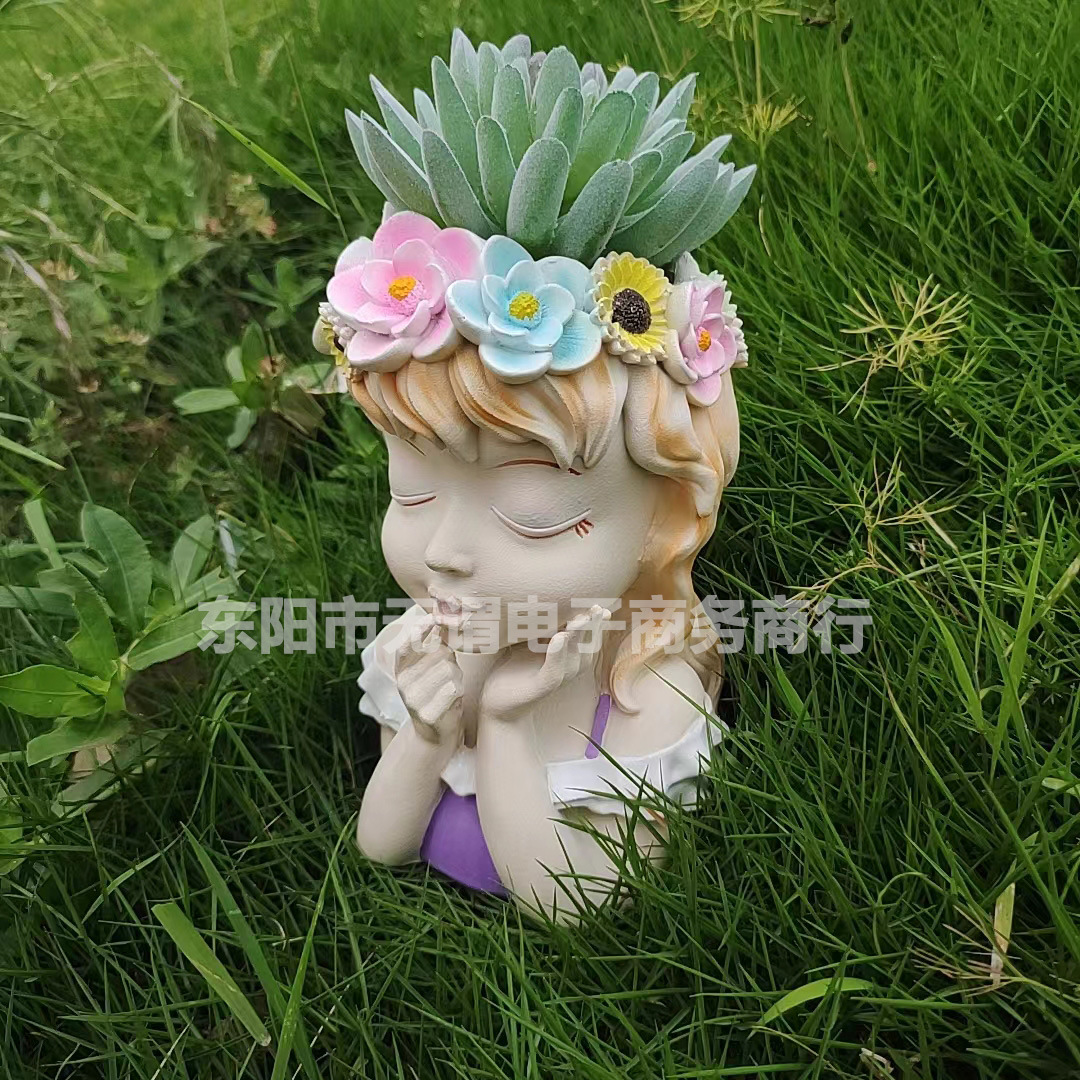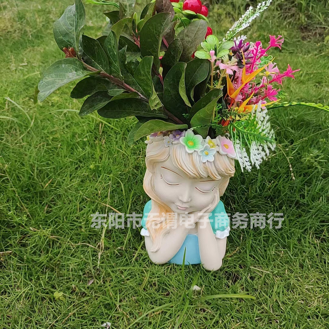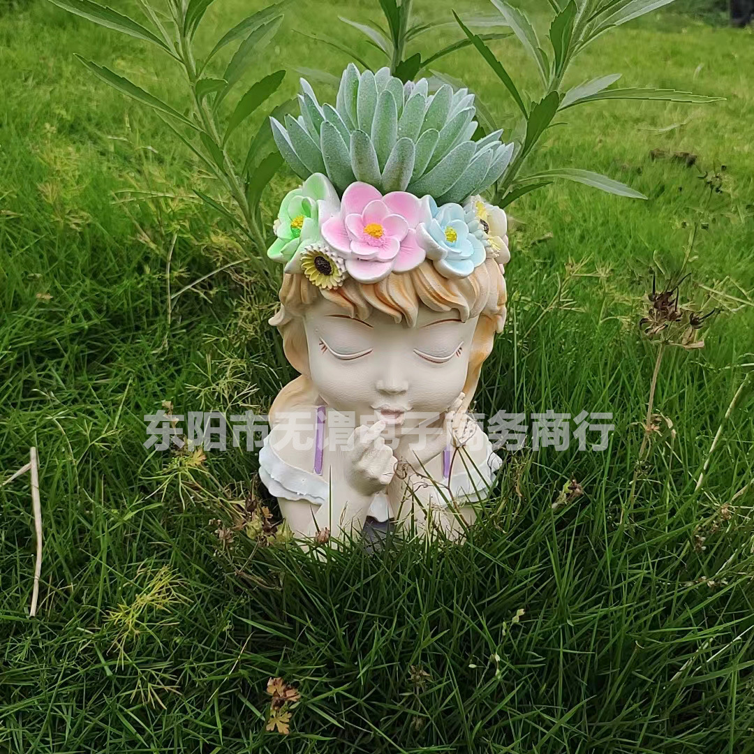 국경 간 신제품 정원 안뜰 다채로운 요정 반몸 항아리 머리 화환 소녀 꽃 냄비 야외 장식 장식품스토어 가기