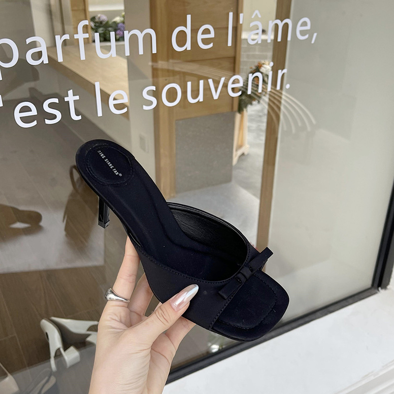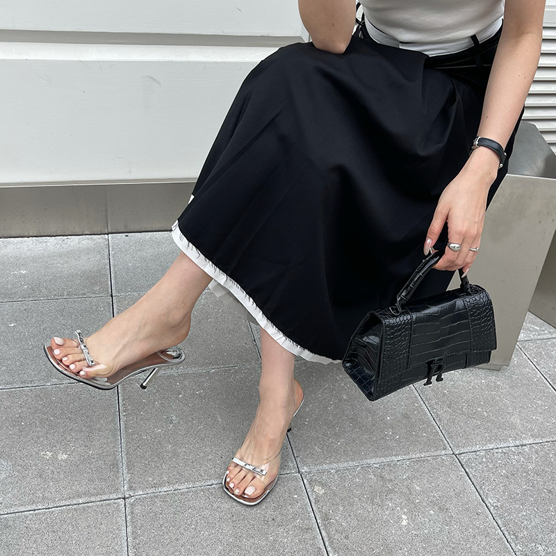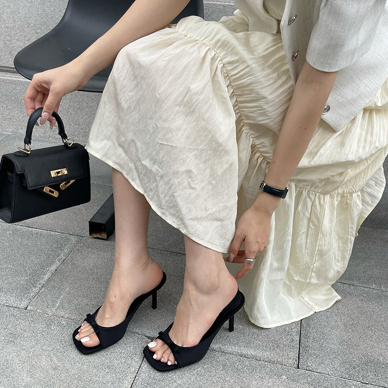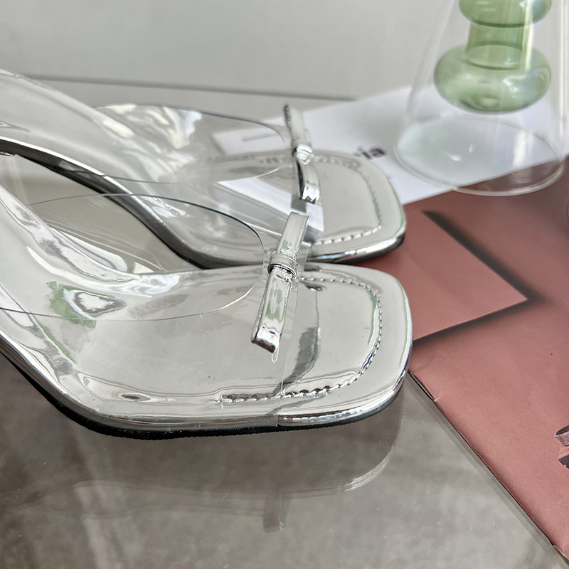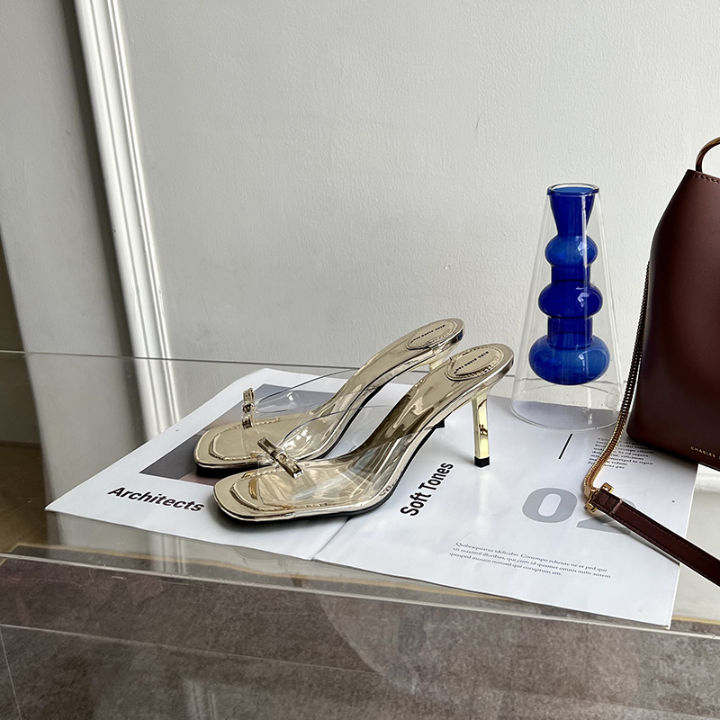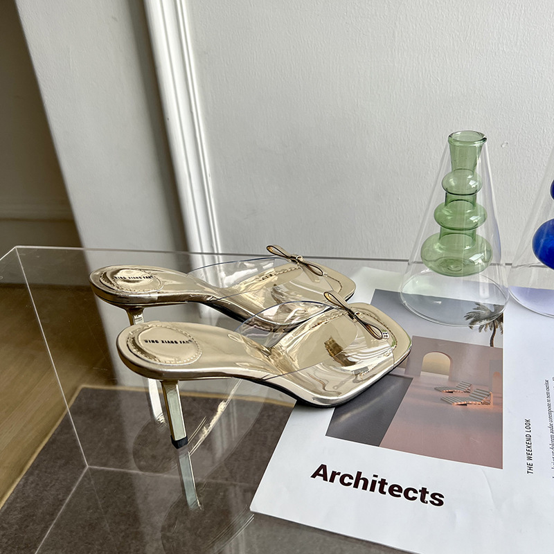 하이힐 샌들 하이 엔드 힐 슬리퍼 여름 얇은 발 뒤꿈치 유럽과 미국 체크 투명 슬리퍼