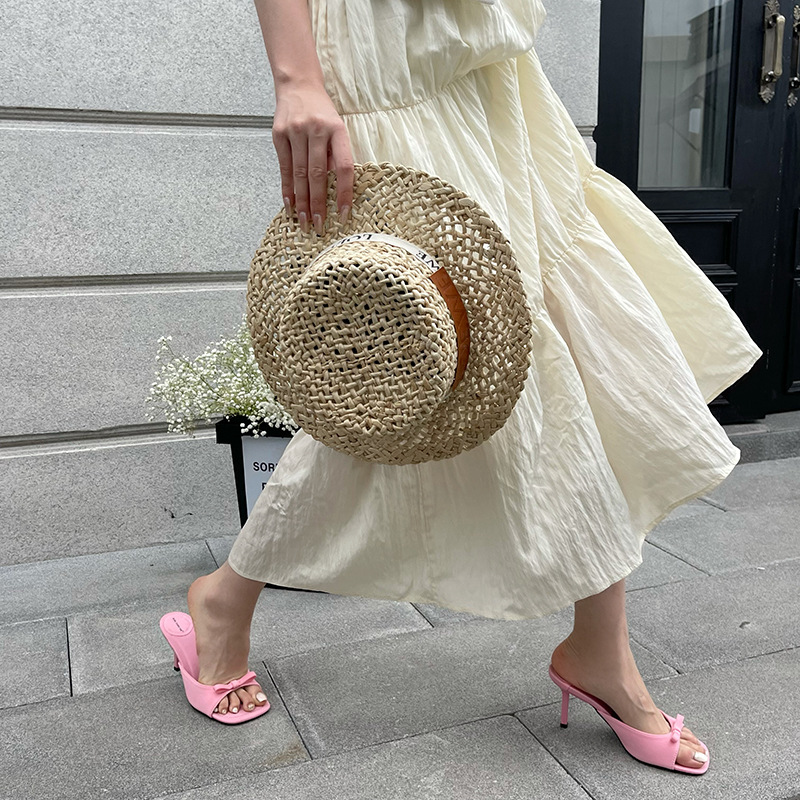 하이힐 샌들 하이 엔드 힐 슬리퍼 여름 얇은 발 뒤꿈치 유럽과 미국 체크 투명 슬리퍼스토어 가기