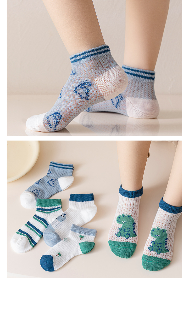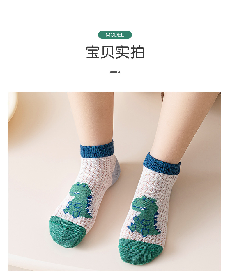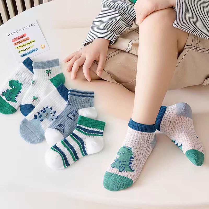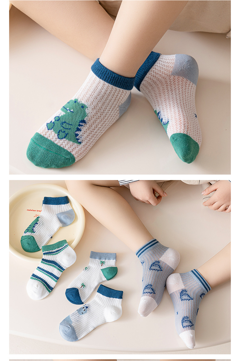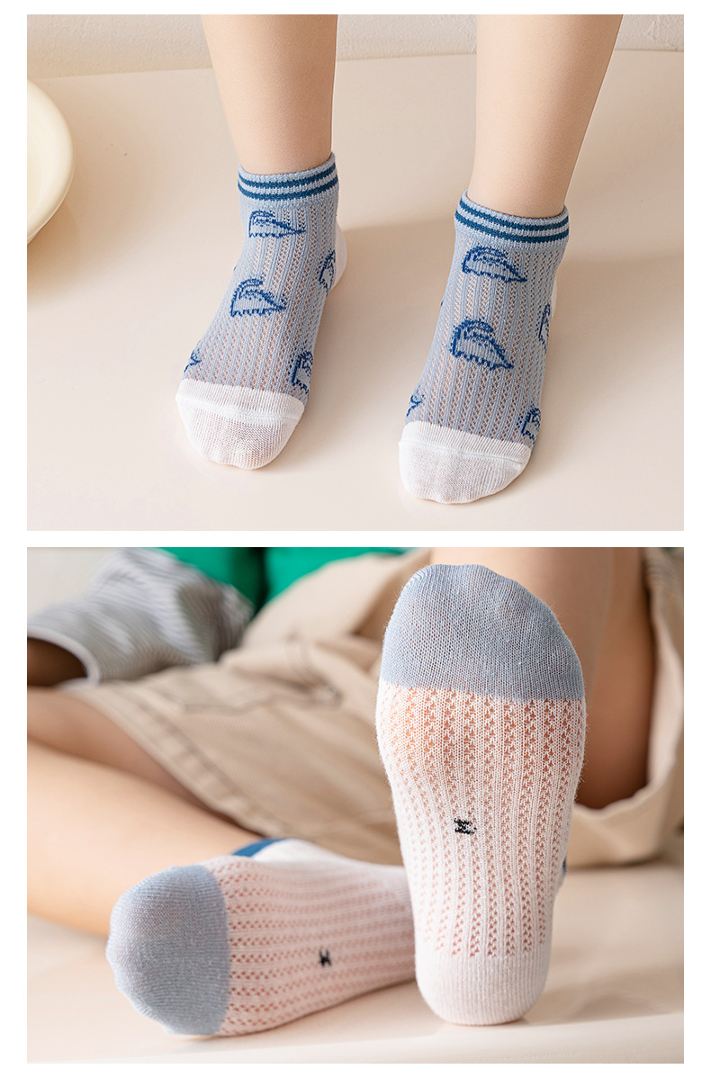 어린이 양말 소년 양말 여름 얇은 큰 소년 통기성 메쉬 만화 공룡 보트 양말 짧은 양말
