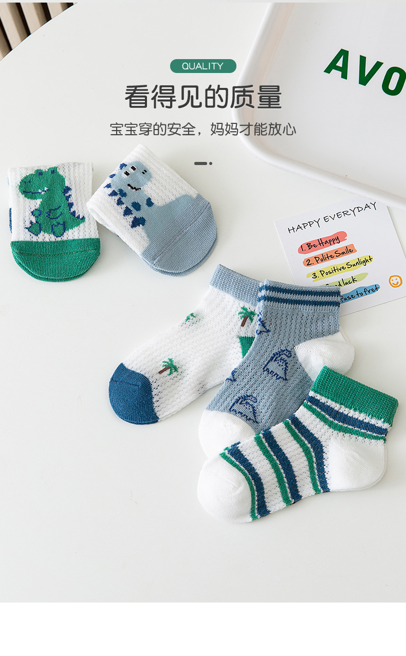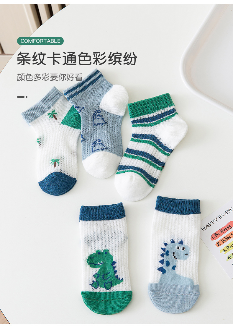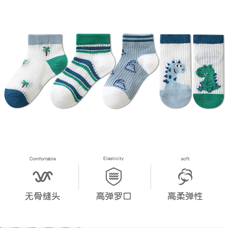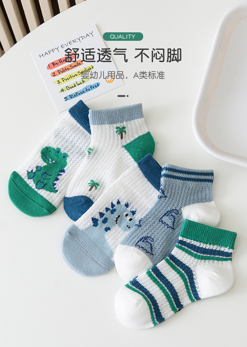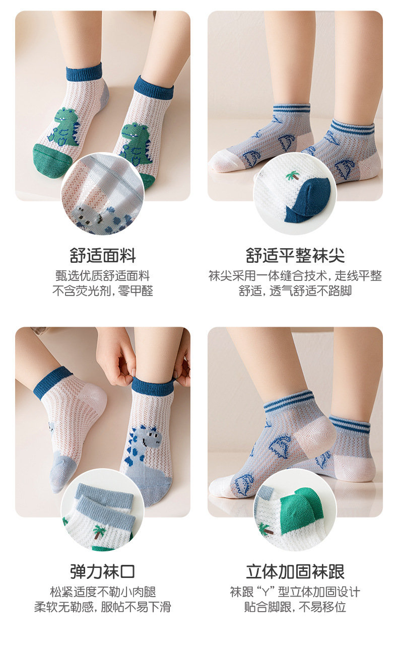 어린이 양말 소년 양말 여름 얇은 큰 소년 통기성 메쉬 만화 공룡 보트 양말 짧은 양말