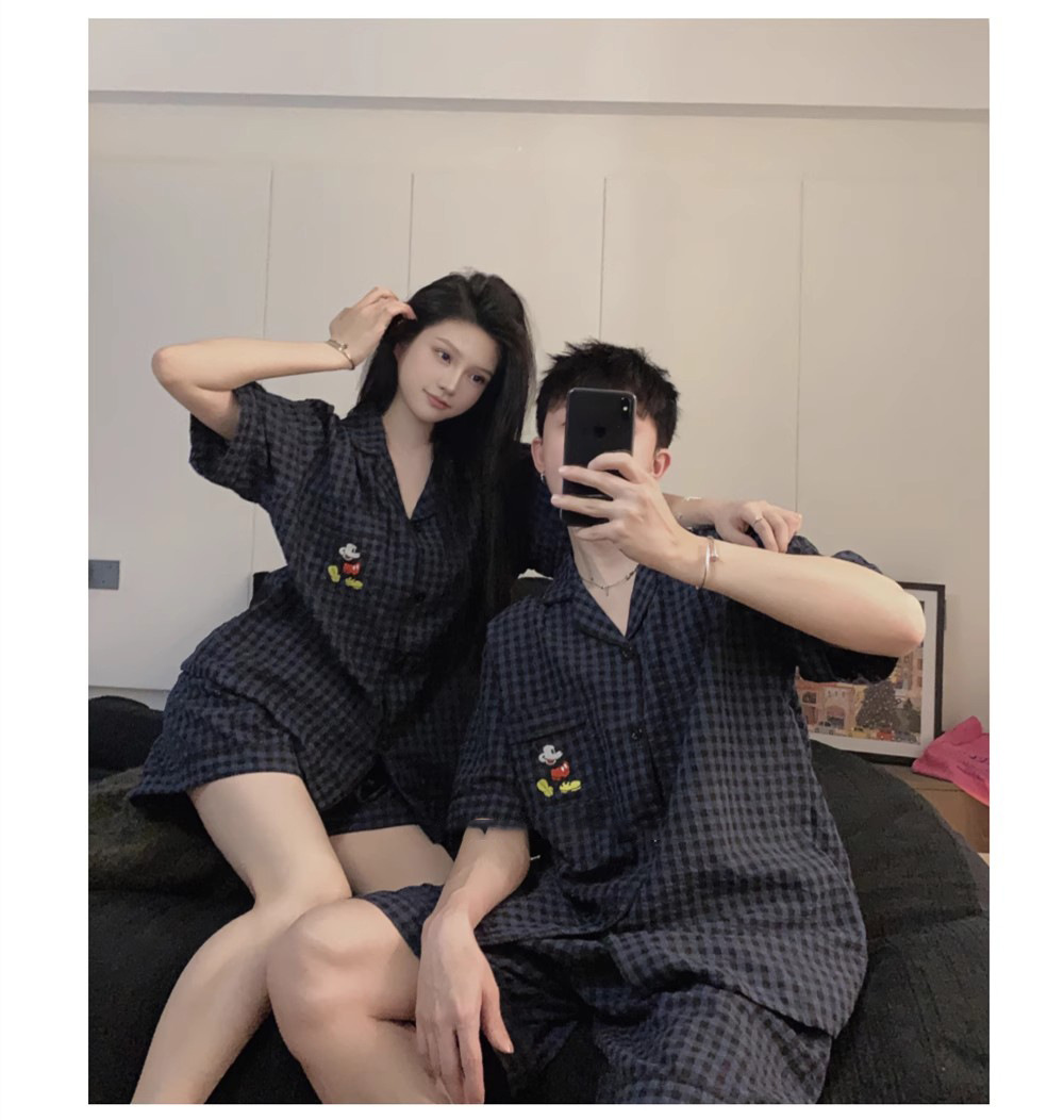 커플 잠옷 여성의 여름 반팔 세트 얇은 학생 느슨한 플러스 사이즈 남성 홈 옷 하이 엔드 착용스토어 가기