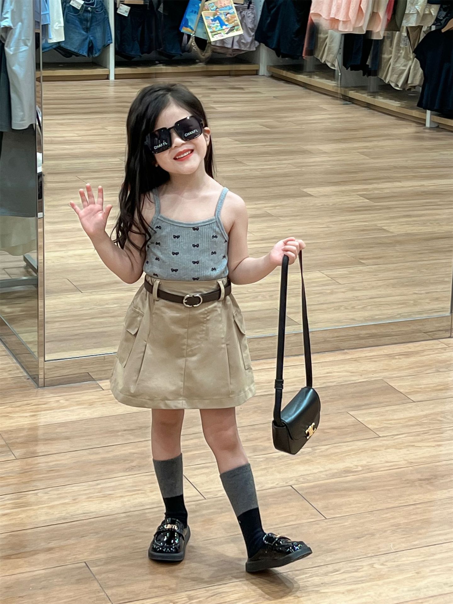2024 년 여름 한국 스타일 아동복 새 여아 풀 프린트 활 스트랩 작업복 치마스토어 가기