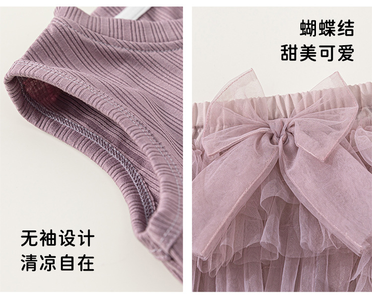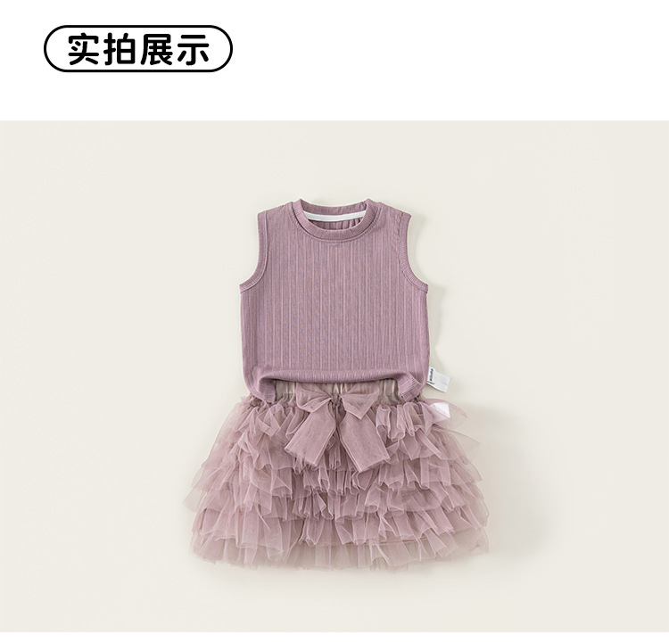 유 바오 아동복 소녀 여름 조끼 활 거즈 스커트 투피스 민소매 탑 메쉬 스커트 케이크 스커트 세트