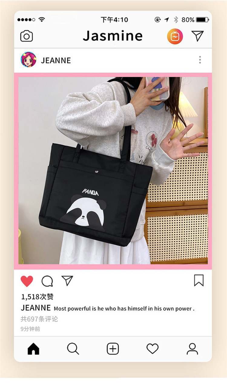 팬더 토트 백 202 새로운 달콤한 나일론 가방 부드러운 소녀 어깨 가방 패션 여행 대용량 만화 배낭스토어 가기