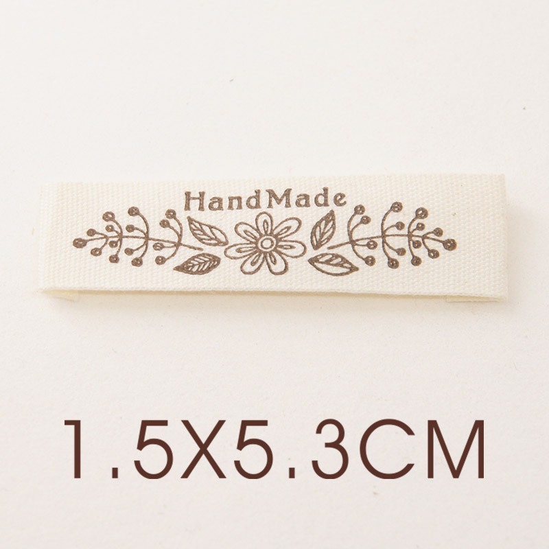새로운 재고 코튼 천 라벨 손으로 접은 가장자리 다크 브라운 로즈 양 꽃 라벨 액세서리 재봉 DIY스토어 가기