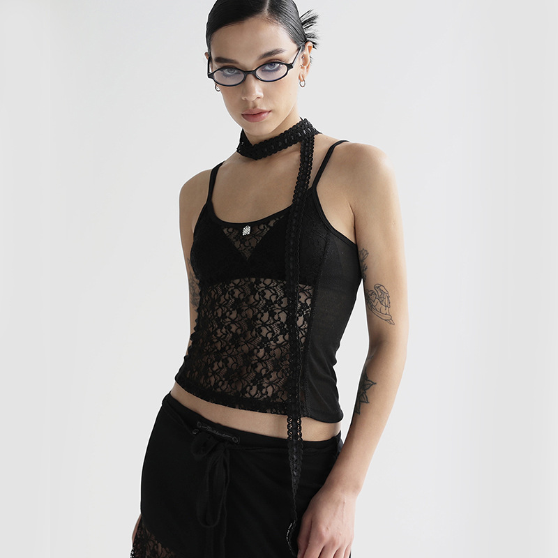 Badblood 트렌디 브랜드 레이스 섹시 카미솔보기 슬림 핏 바투밍 유행 한국 여름 탑스토어 가기
