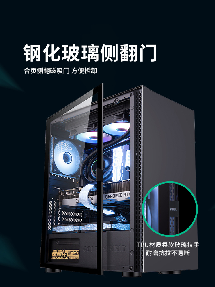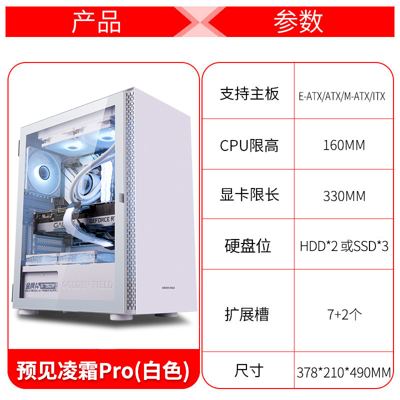 Jinhetian Lingshuang 프로 섀시 데스크탑 360 수냉식 전면 투명 화이트 컴퓨터 메인 섀시 ATX 섀시스토어 가기