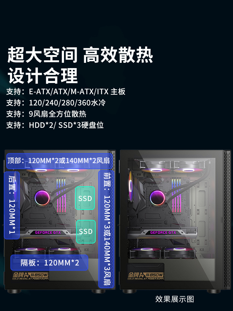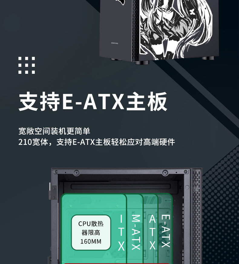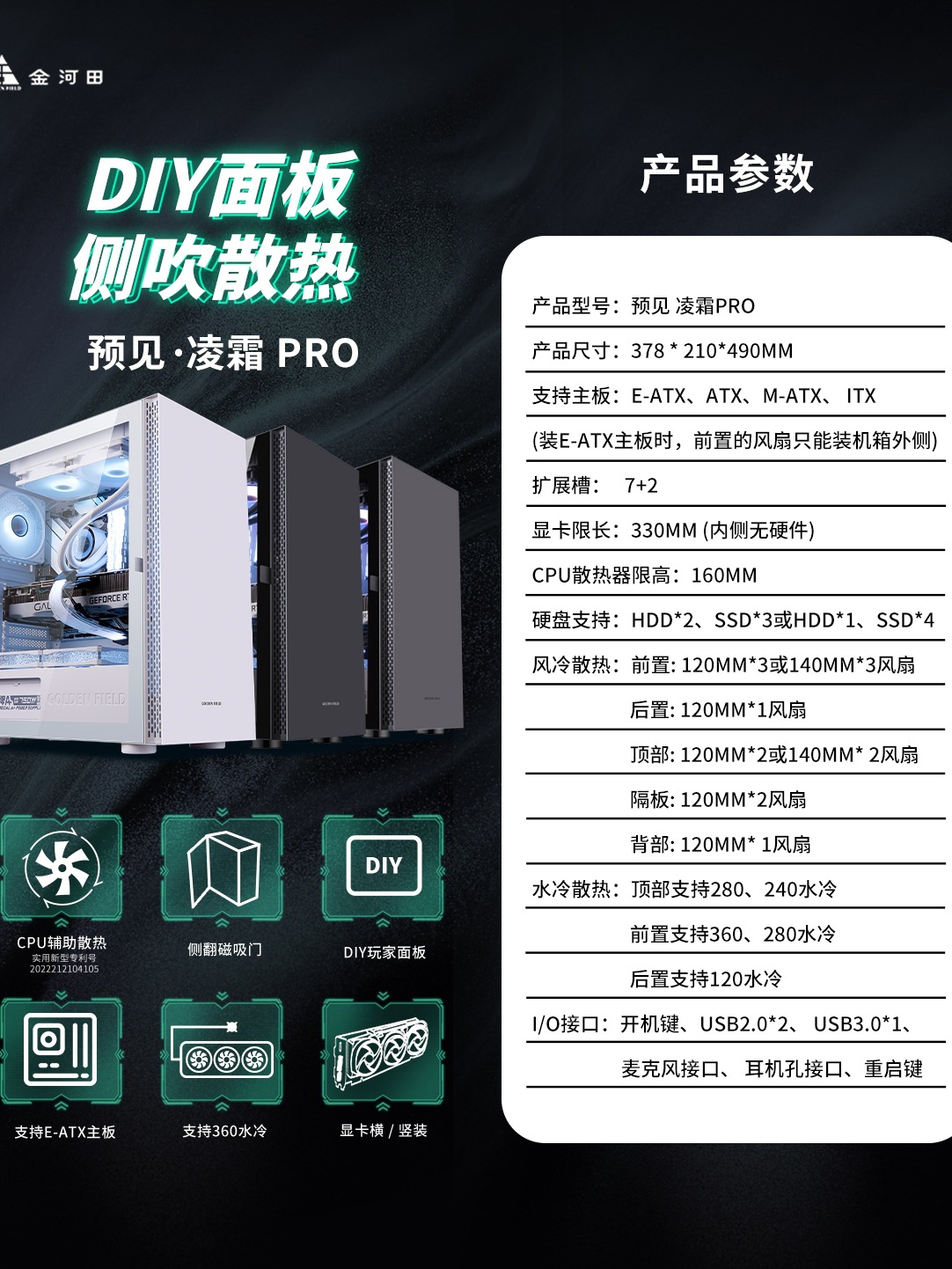 Jinhetian Lingshuang 프로 섀시 데스크탑 360 수냉식 전면 투명 화이트 컴퓨터 메인 섀시 ATX 섀시