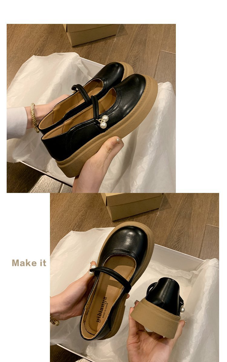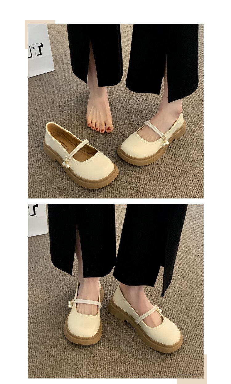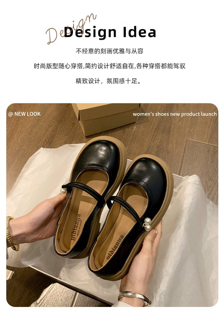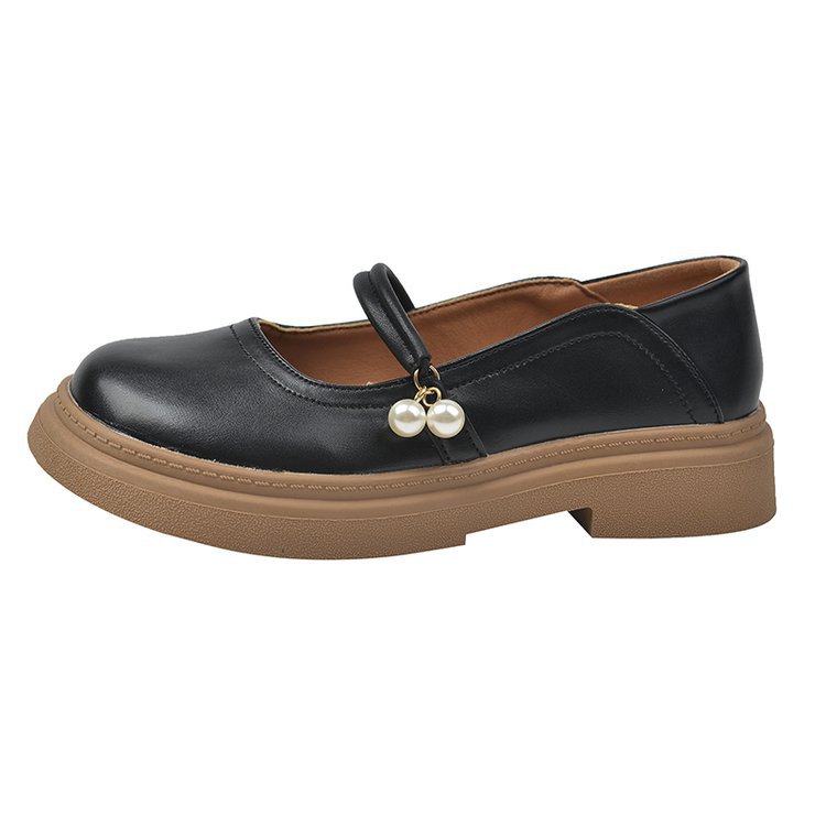 프랑스 스타일의 부드러운 기질 싱글 레이어 신발 여성의 새로운 중국 스타일 국가 스타일 여성 신발 라운드 발가락 진주 메리 제인 신발 치마와 함께 작은 가죽 신발스토어 가기