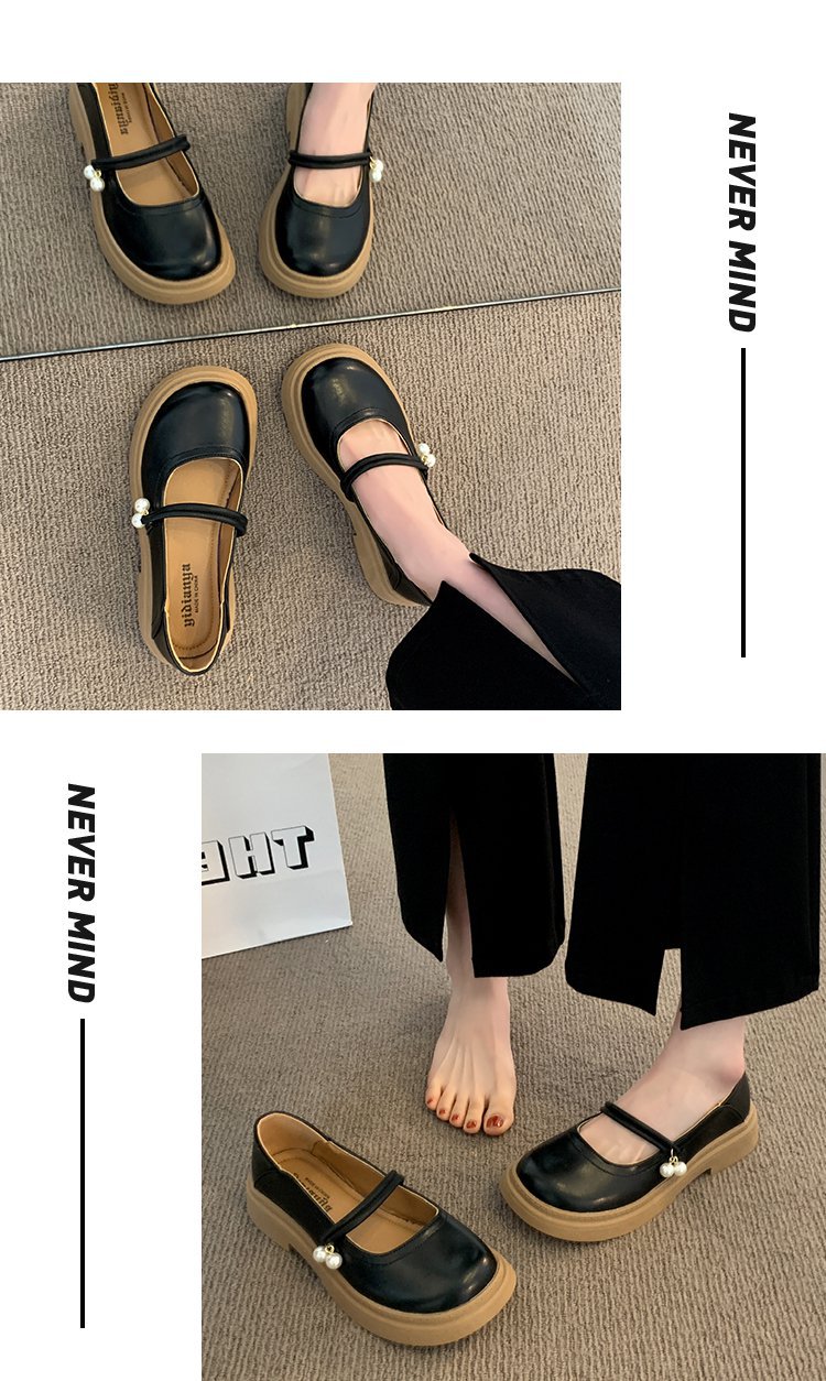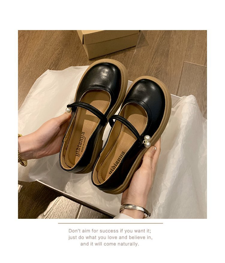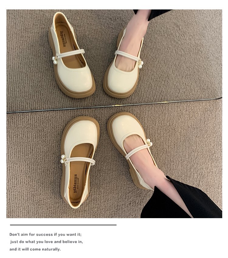 프랑스 스타일의 부드러운 기질 싱글 레이어 신발 여성의 새로운 중국 스타일 국가 스타일 여성 신발 라운드 발가락 진주 메리 제인 신발 치마와 함께 작은 가죽 신발