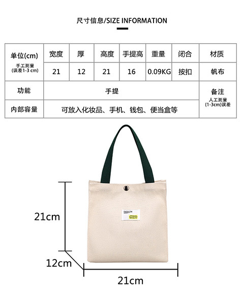 새로운 핸드백 올 매치 캔버스 핸드백 미라 백 통근 런치 백 Baoma 스토리지 백스토어 가기