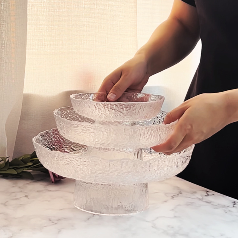 유리 과일 플레이트 가구 거실 커피 테이블 딤섬 크리스탈 플레이트 일본 트레이 라이트 럭셔리 높은 발 사탕 말린 과일 플레이트스토어 가기