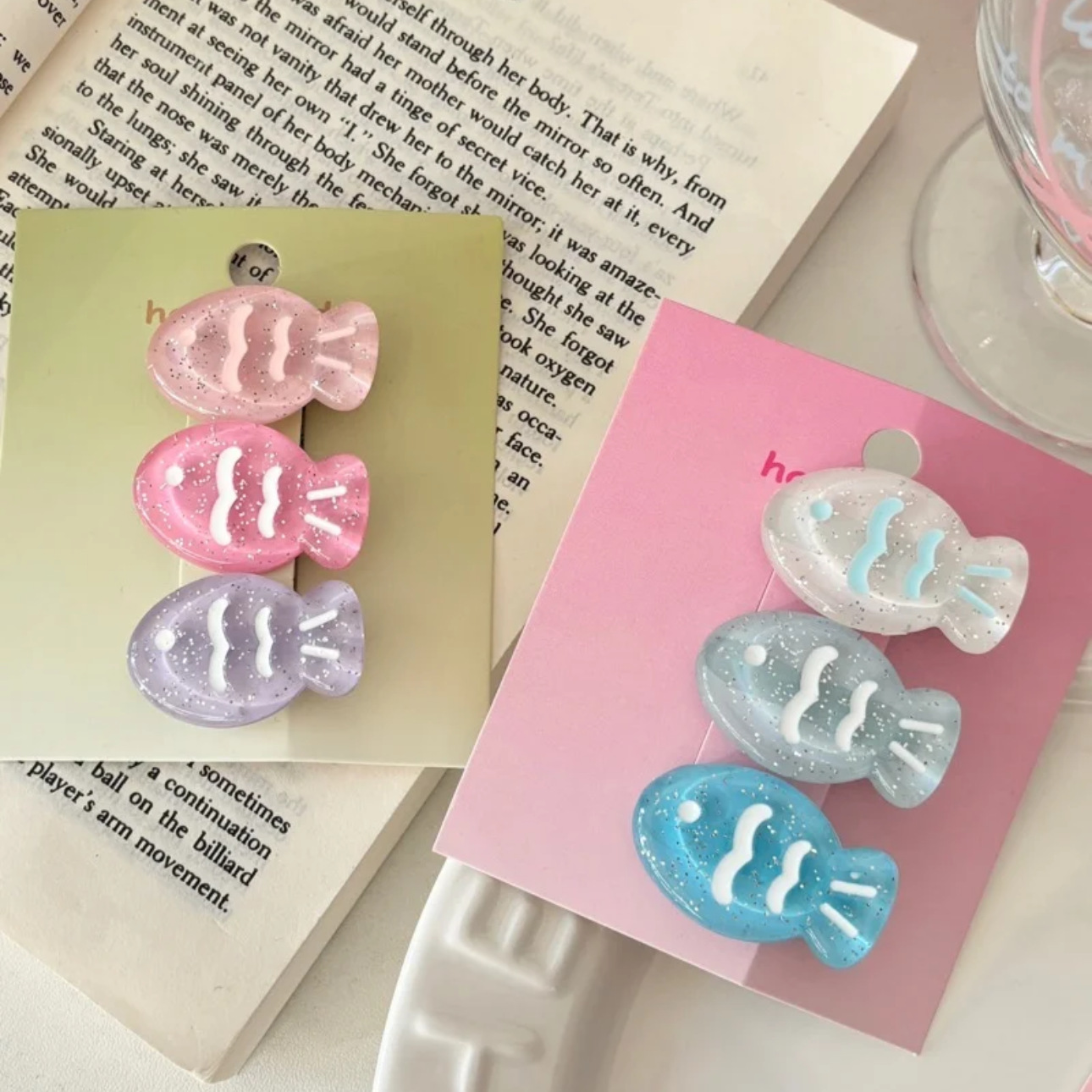 • 반짝이는 우유 흰살 생선 머리핀