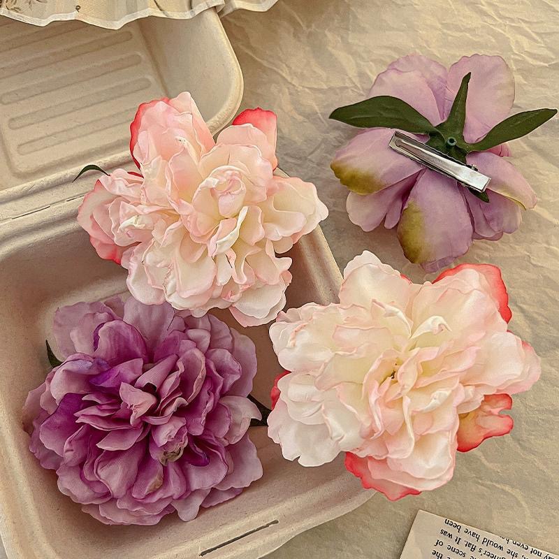 모란 꽃 헤어핀 ~ 큰 휴가 스타일 휴식 스타일 사진 꽃 사이드 클립 헤어 액세서리 봄 새로운 여성용