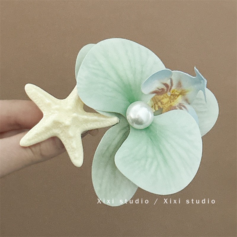 • 민트 그린 호접란 불가사리 머리핀