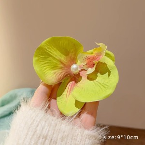 • 호접란 꽃 머리핀-옐로우 머스타드 그린