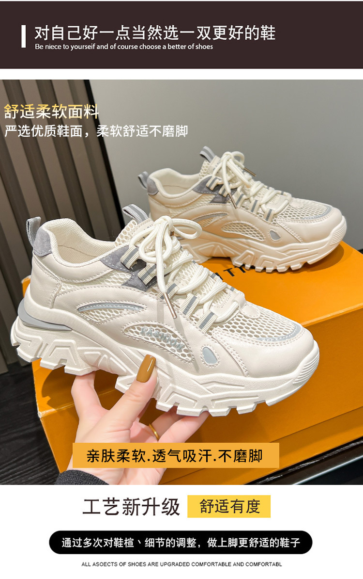2024 년 봄과 여름 새로운 메쉬 통기성 운동화 여자 두꺼운 한식 Ins 올 매치 캐주얼 토레 신발 런닝 슈즈