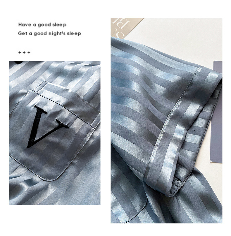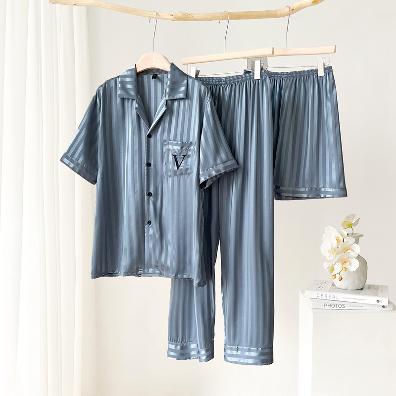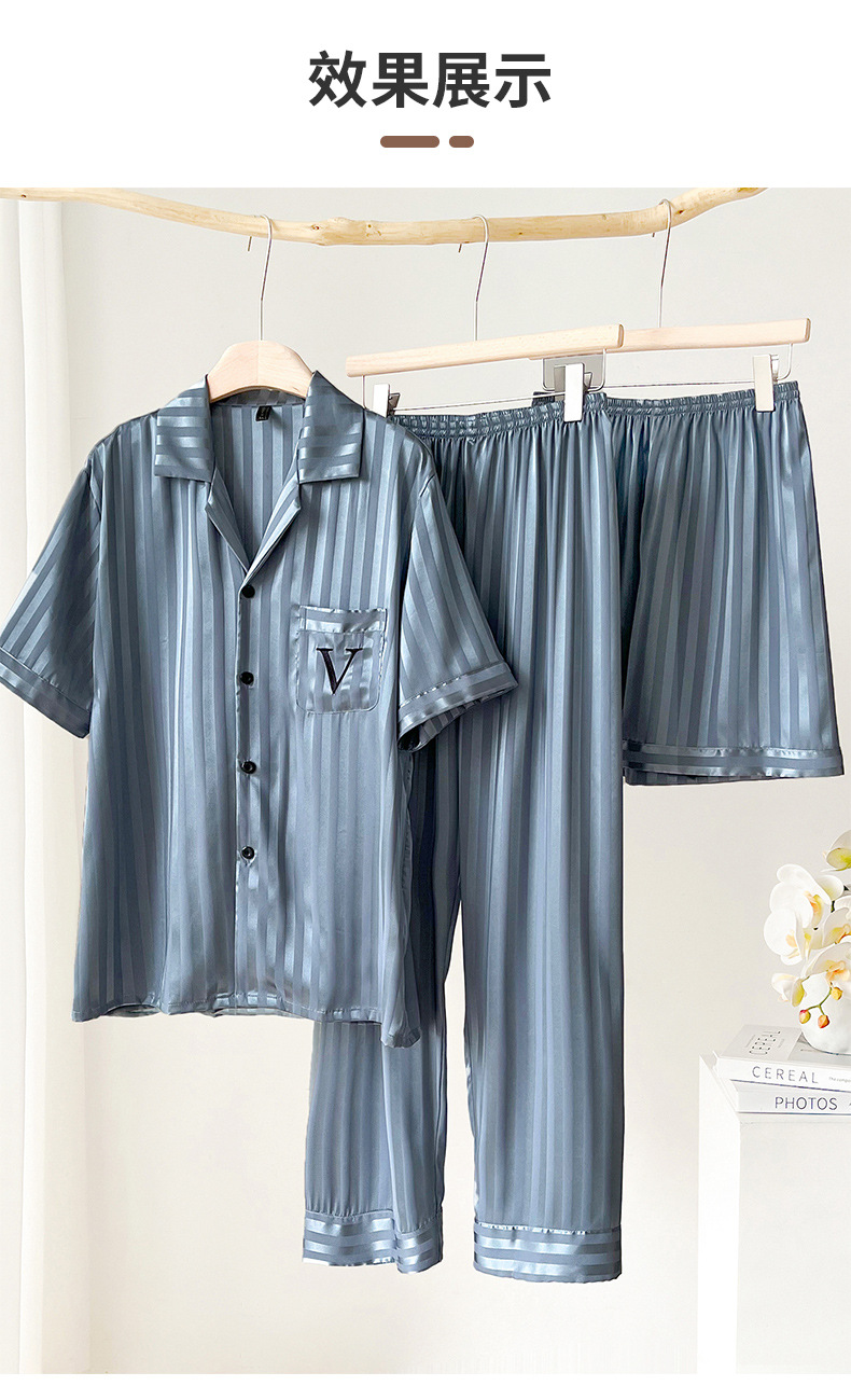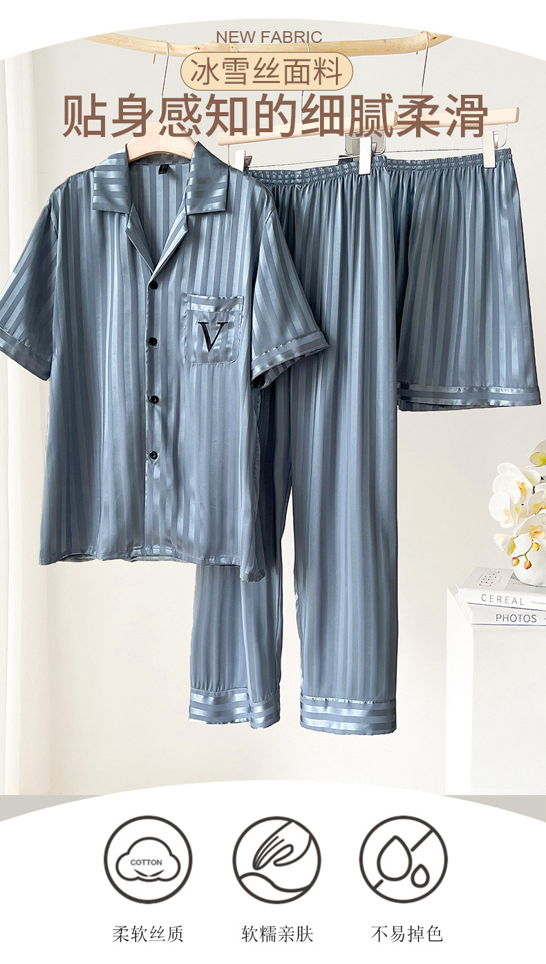파자마 남자 여름 아이스 실크 반팔 3 피스 홈 옷 여름 얇은 여름 실크 세트 2024 새로운 도착스토어 가기