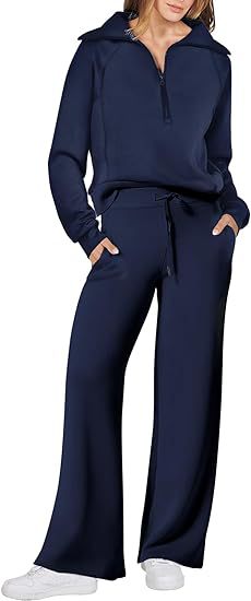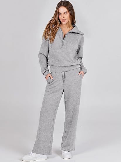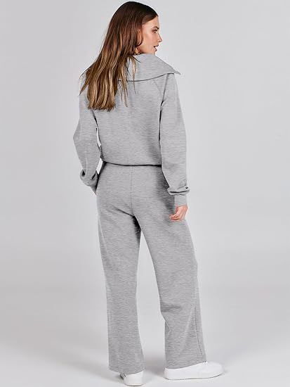 유럽과 미국의 대외 무역 2025 아마존 가을, 겨울 여성 캐주얼 스포츠 정장 지퍼 긴팔 운동복 넓은 다리 바지 세트스토어 가기