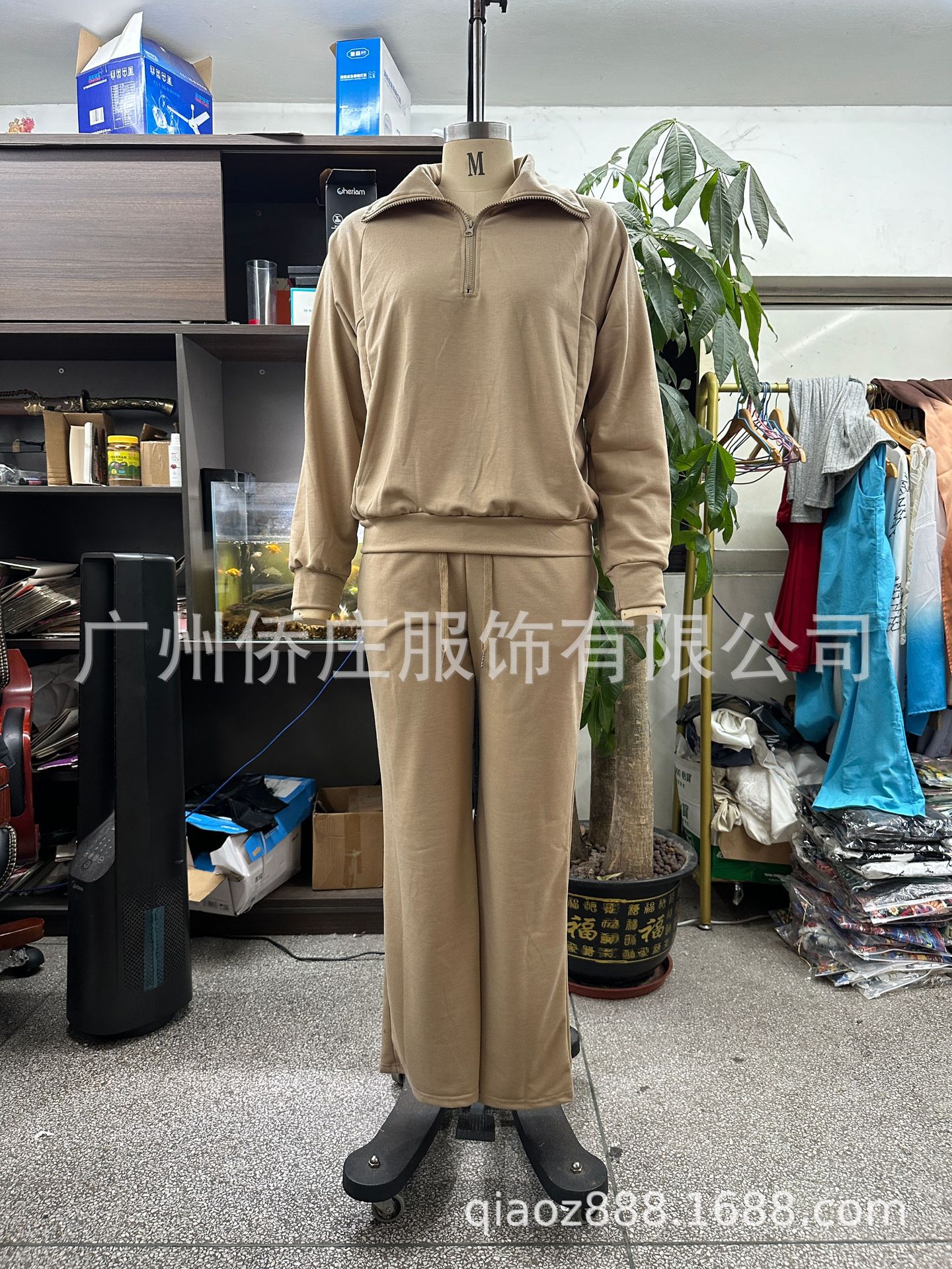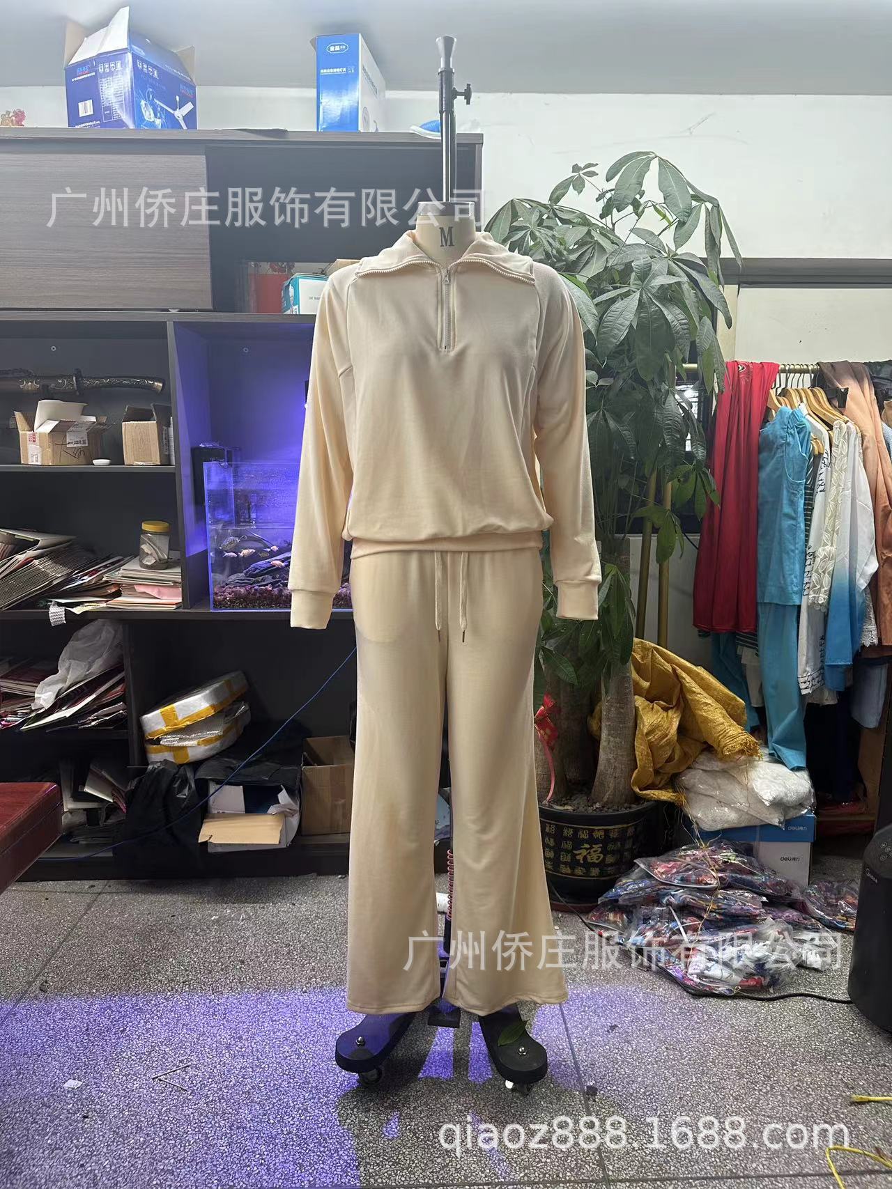 유럽과 미국의 대외 무역 2025 아마존 가을, 겨울 여성 캐주얼 스포츠 정장 지퍼 긴팔 운동복 넓은 다리 바지 세트