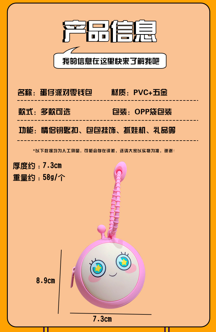 • 계란 파티 동전 지갑 키 체인-계란 분말