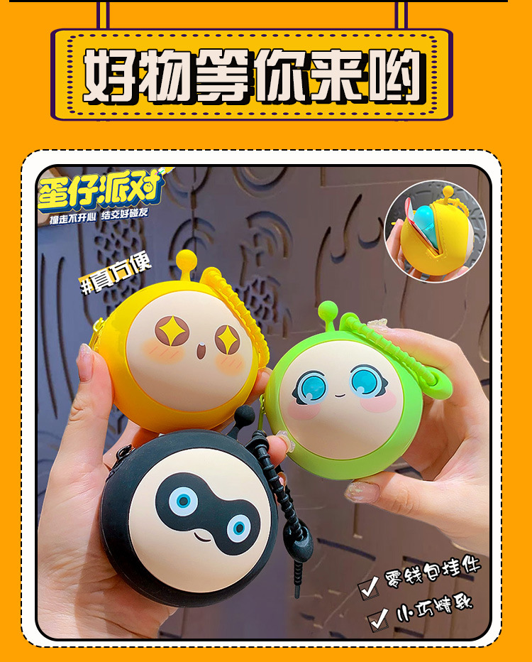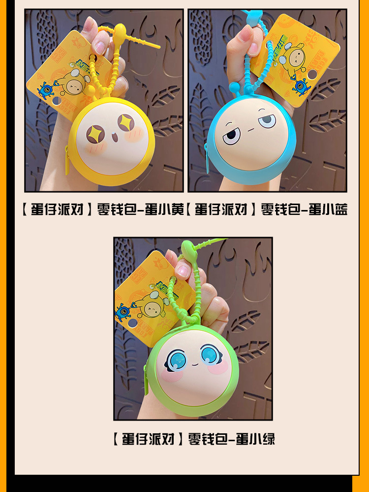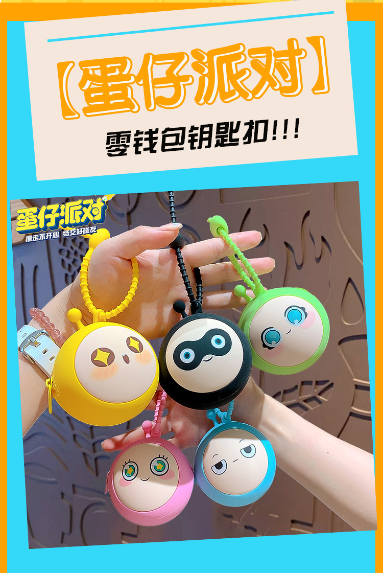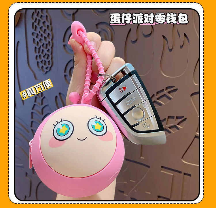 정품 계란 파티 실리콘 동전 지갑 키 체인 펜던트 학생 학교 가방 교수형 보석 작은 선물 도매스토어 가기