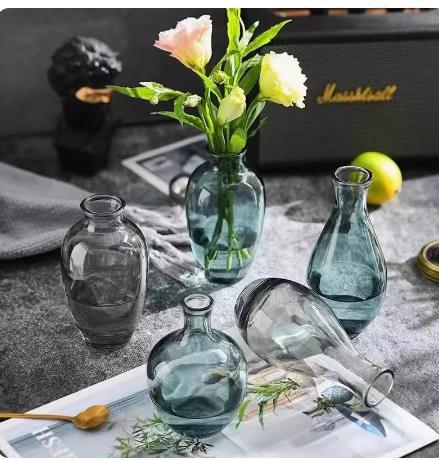 인스 스타일 소구경 미니 꽃병 투명 수경재배 꽃병 녹색 식물 꽃꽂이 장식품 투명 꽃병