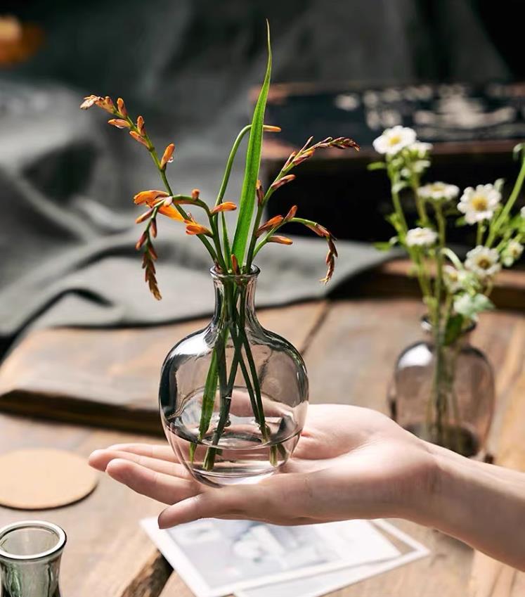 인스 스타일 소구경 미니 꽃병 투명 수경재배 꽃병 녹색 식물 꽃꽂이 장식품 투명 꽃병스토어 가기
