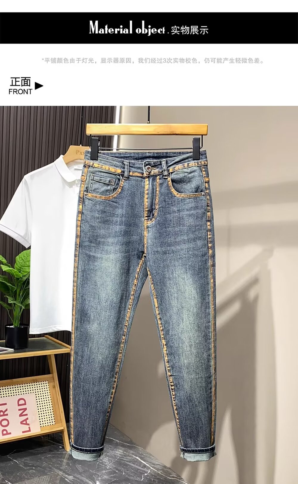 하이 스트리트 빈티지 세탁 및 페인트 청바지 남성 트렌디 브랜드 2024 여름 새로운 스키니 핸섬 슬림스토어 가기