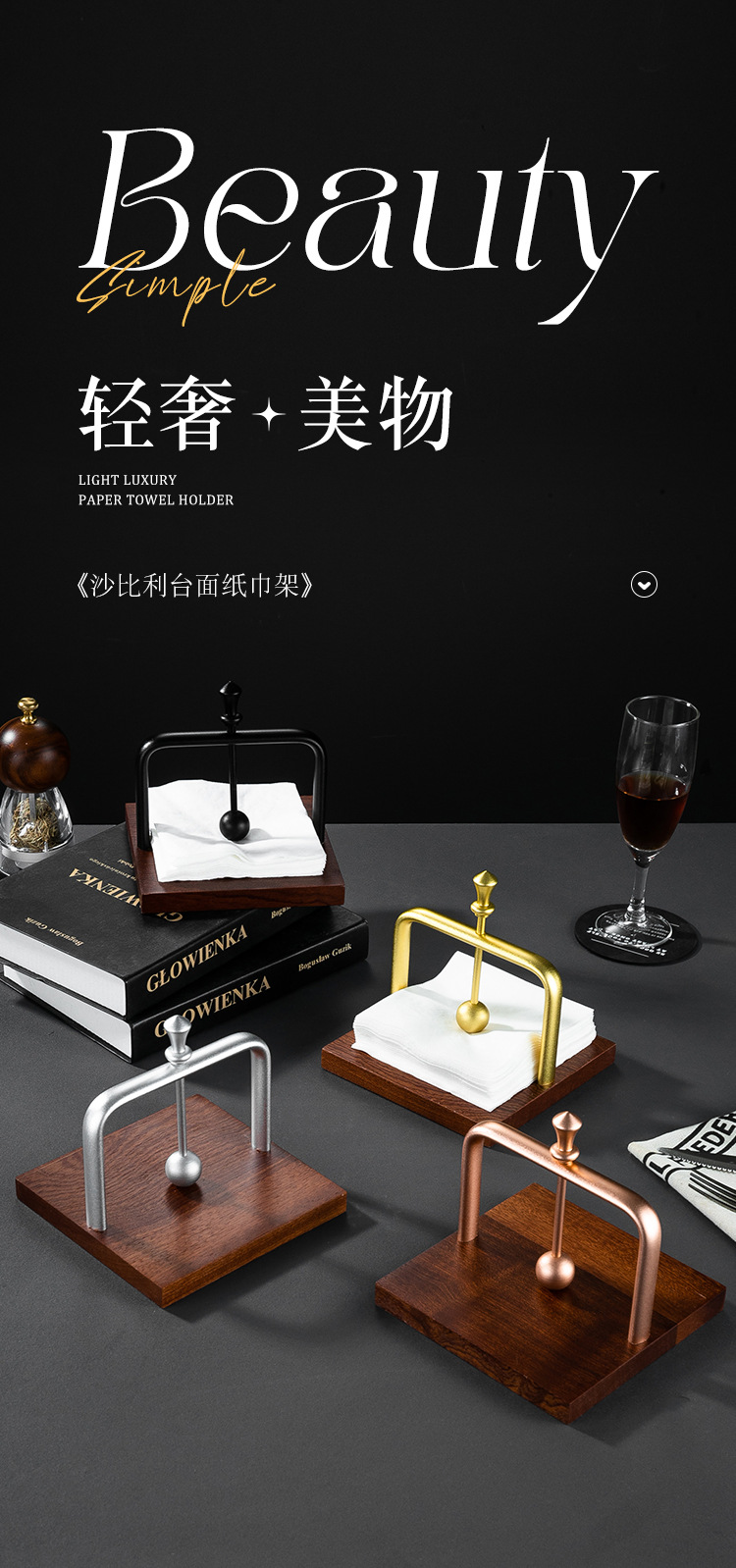 국경 간 창조적 인 종이 타월 홀더 사각 종이 프레스 나무 좌석 종이 타월 홀더 레스토랑 호텔 카페 조리대 수직 종이 타월 홀더스토어 가기