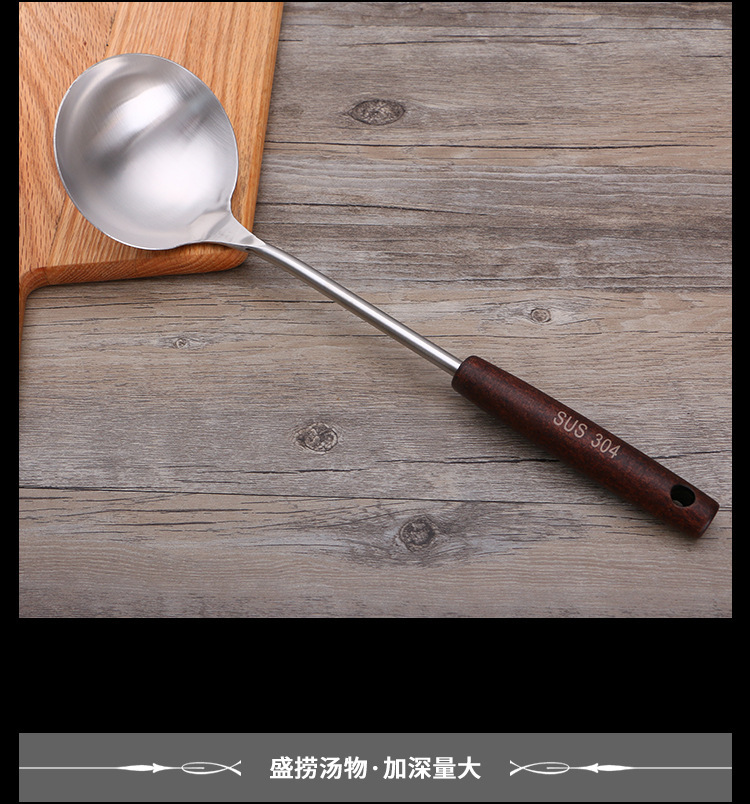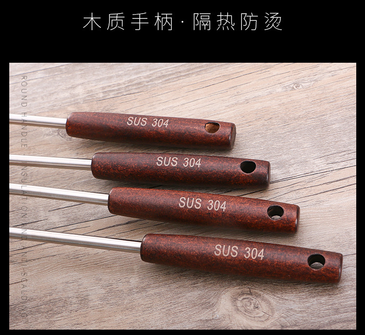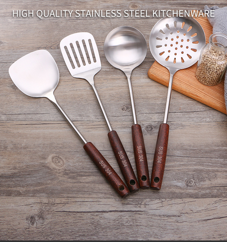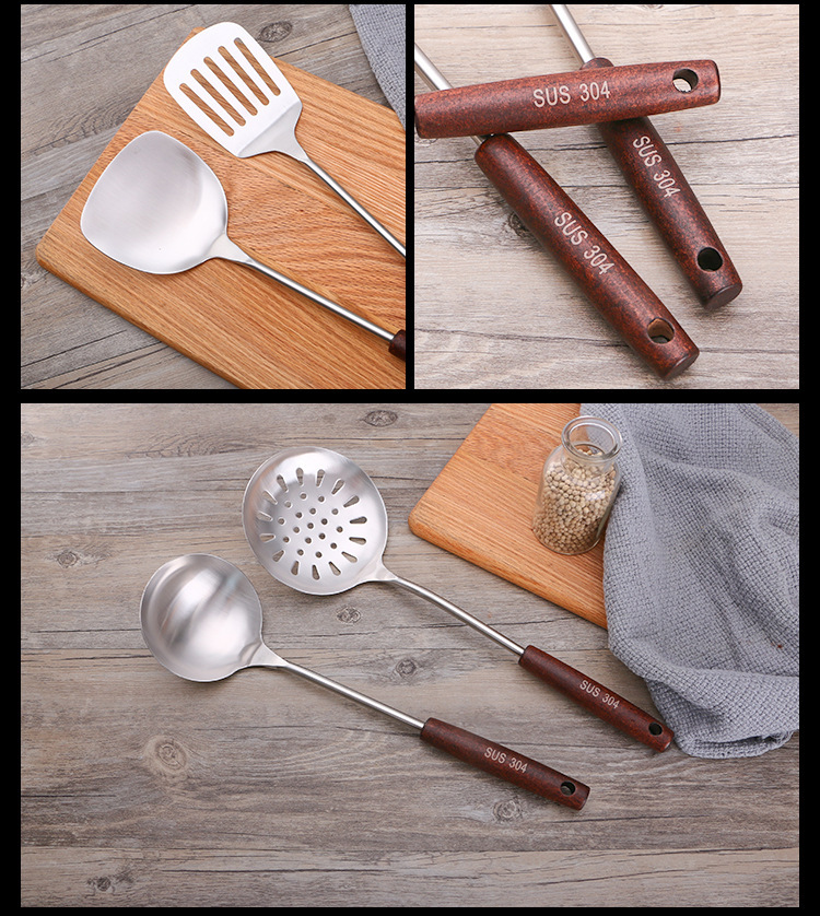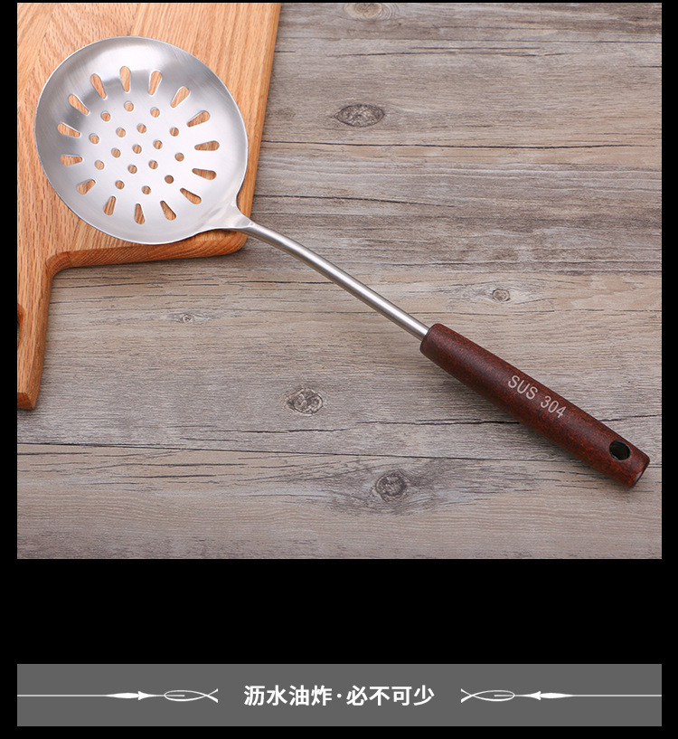 엄선된 제조업체 주방 용품 요리 나무 손잡이 요리 삽 크리 에이 티브 울타리 스푼 소쿠리 냄비 304 스테인레스 스틸