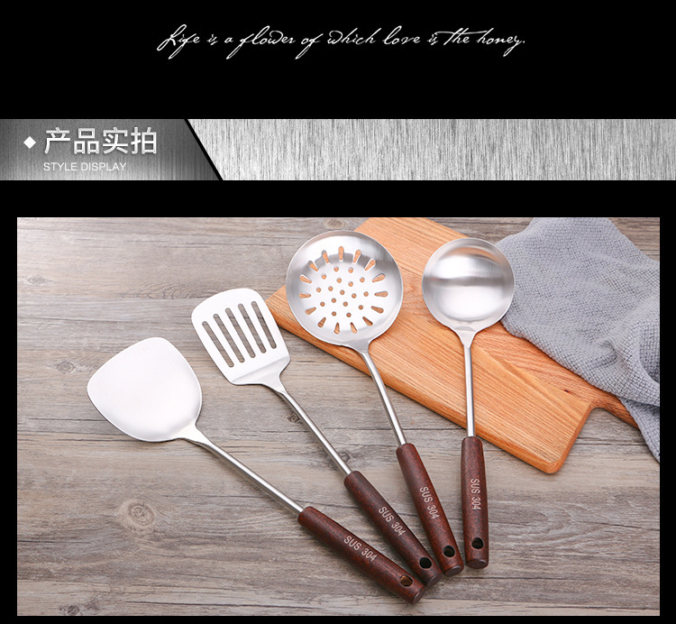 엄선된 제조업체 주방 용품 요리 나무 손잡이 요리 삽 크리 에이 티브 울타리 스푼 소쿠리 냄비 304 스테인레스 스틸스토어 가기